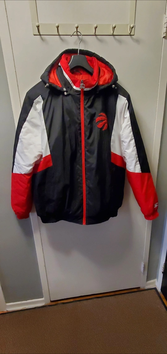 Selling a Starter jacket with the Toronto Raptors logo! It's a size XL and features the classic Raptors colours. The jacket has a hood and is in great condition. Perfect for showing your team spirit!. Very good condition only cash price firm no delivery. I have more Jackets for Men's and Boys for Winter autumn jackets and Rain jackets all size for sale different price different colors and different Brand if you want you can come to see all Jackets only cash. I have and app Facebook. Location Cawthra and Lakeshore Mississauga.