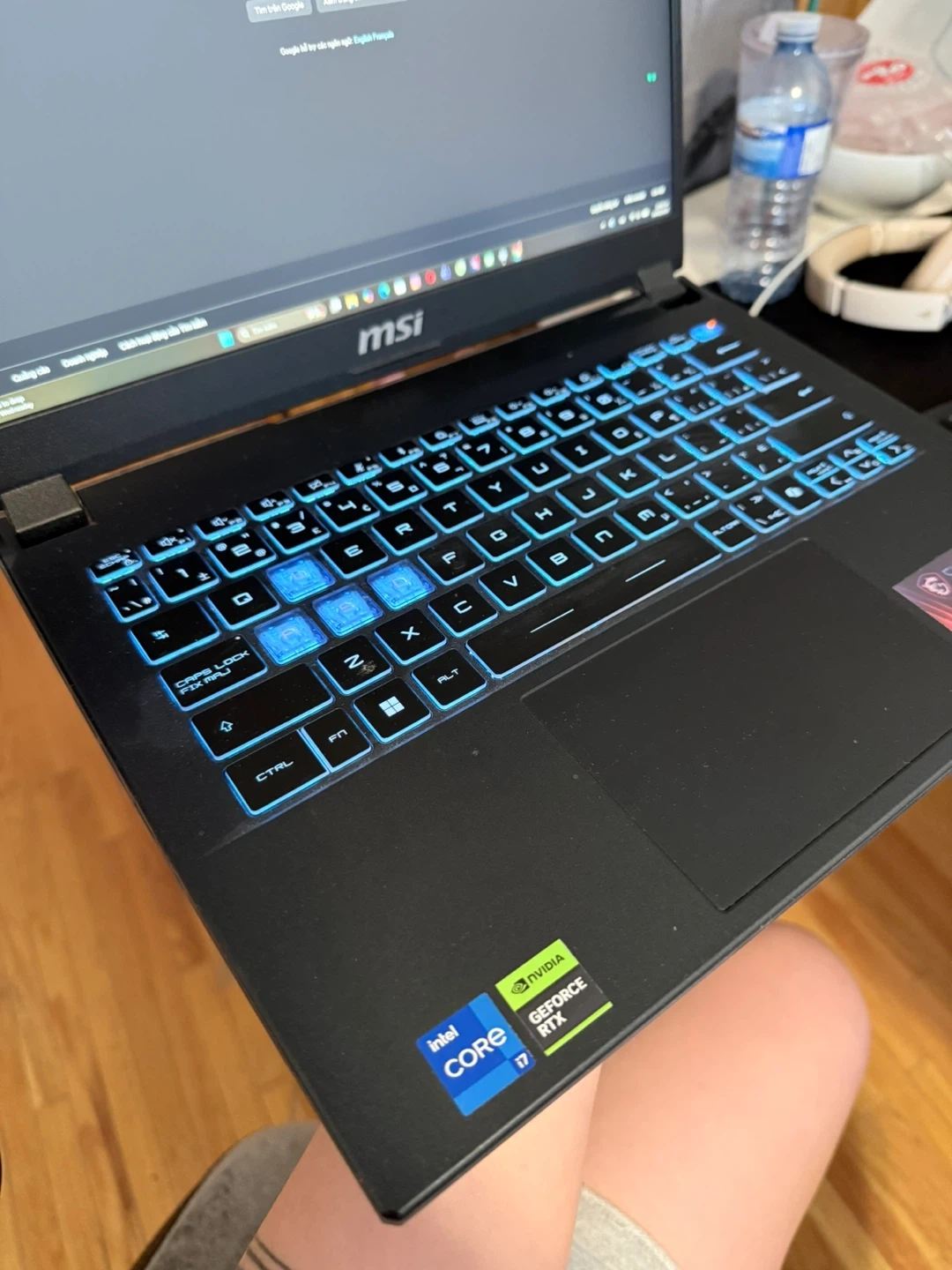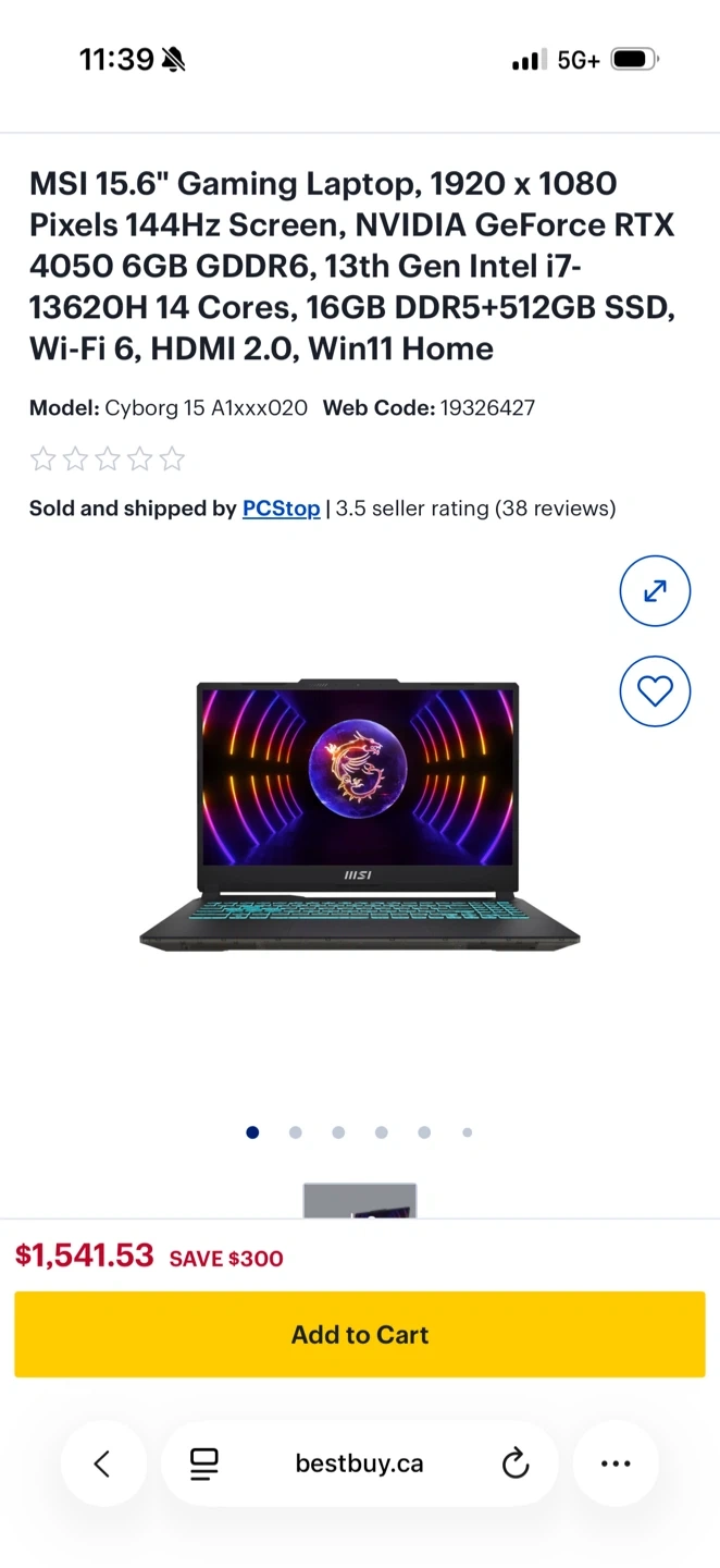 MSI 15.6" gaming laptop. It's equipped with a 13th Gen Intel i7 processor, NVIDIA GeForce RTX 4050 graphics, 16GB DDR5 RAM, and a 512GB SSD. Features a 1920x1080 resolution screen with a 144Hz refresh rate.