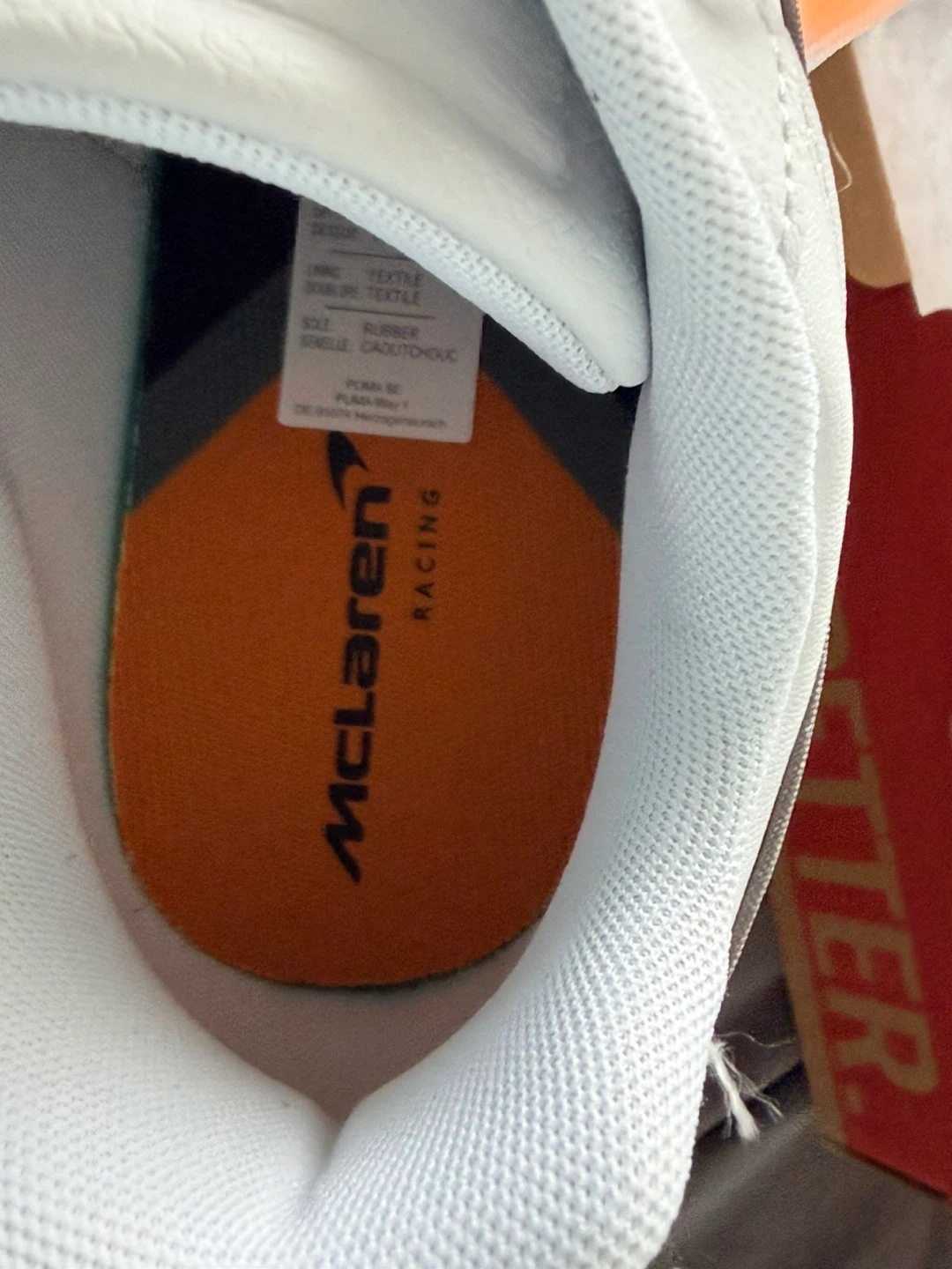 Puma McLaren Caven III shoes in white and orange. Leather and textile upper. Rubber sole. Includes original box.Never worn. Open to offers in reasonable ones pick up only near country side and Bramalea rd. THESE ARE SOLD OUT EVERYWHERE YOU CANNOT GET THEM!!!!!