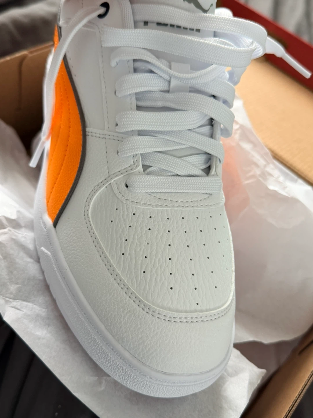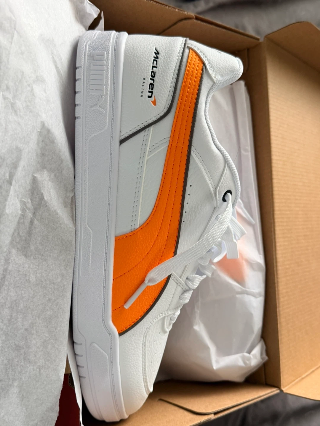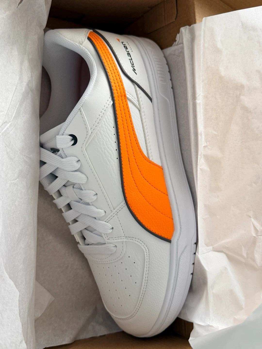 Puma McLaren Caven III shoes in white and orange. Leather and textile upper. Rubber sole. Includes original box.Never worn. Open to offers in reasonable ones pick up only near country side and Bramalea rd. THESE ARE SOLD OUT EVERYWHERE YOU CANNOT GET THEM!!!!!