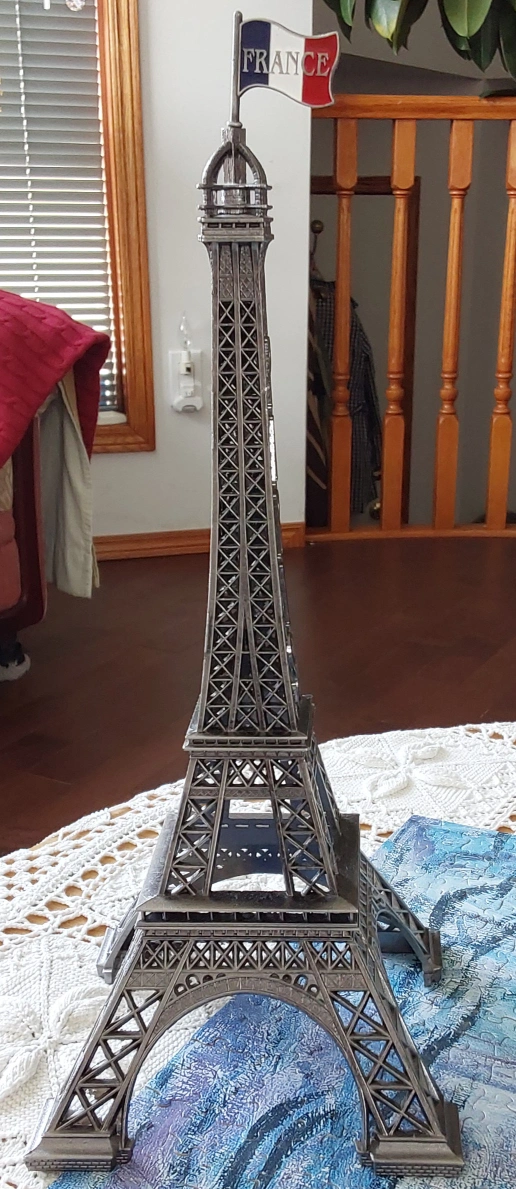 A steel Eiffel Tower model with a "France" flag. It is about 12 inches tall. It is in very good condition. purchased in France 🇫🇷