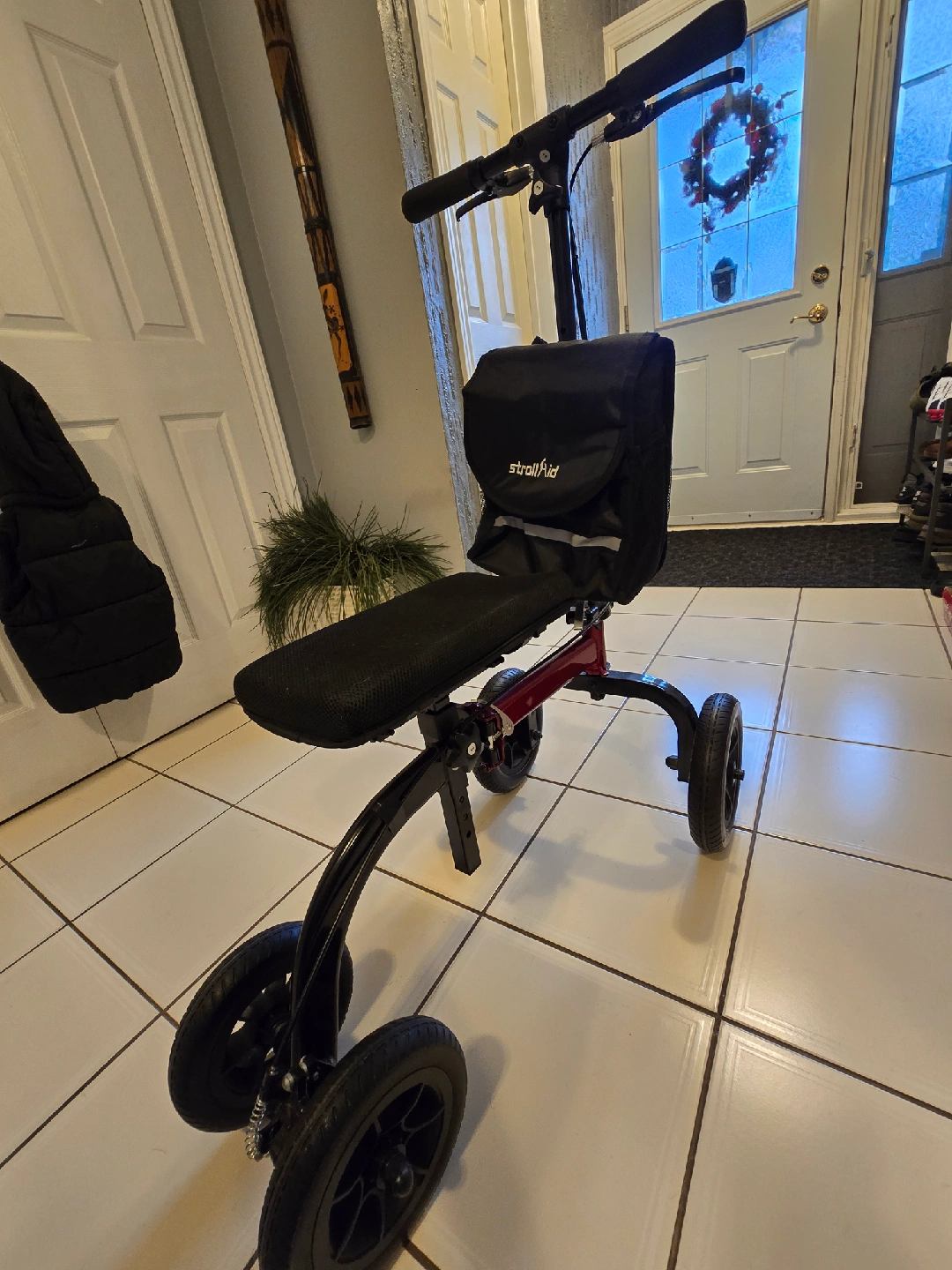 10Selling a steerable knee walker by Strobile. It's in great condition and ready to help you get around while recovering. It features a comfortable knee pad and easy steering for smooth mobility. Perfect for anyone needing a reliable and convenient mobility solution! paid 250 for it