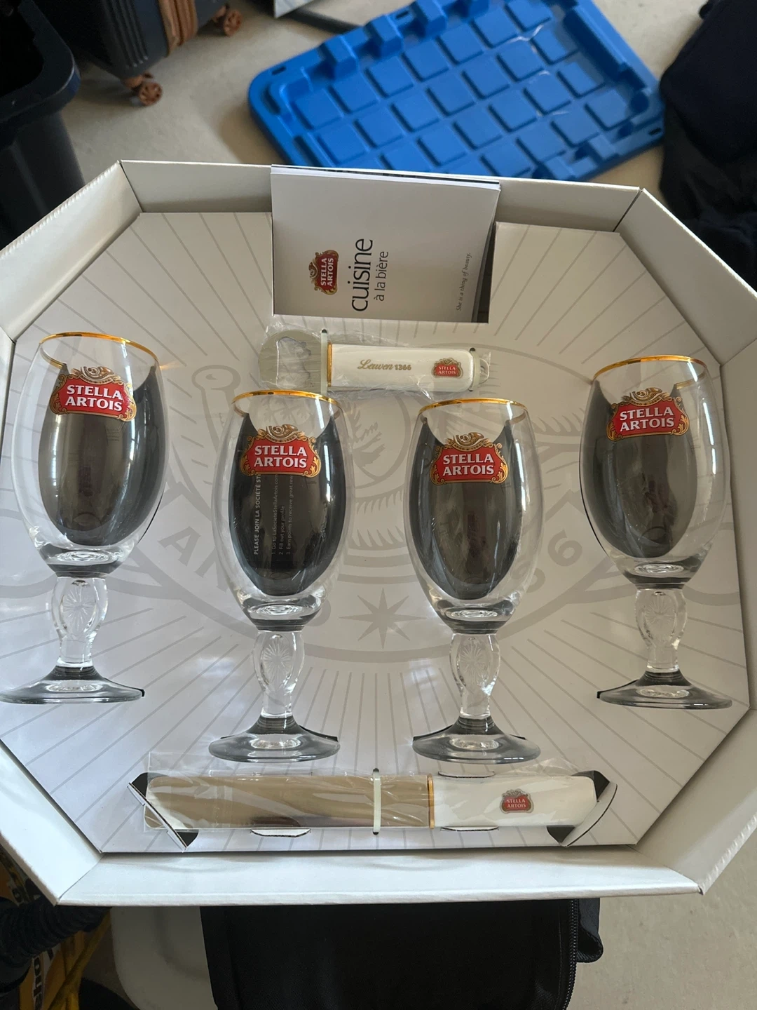 10Stella Artois 9-Step Home Pouring Kit. Includes four stemmed Stella Artois glasses and accessories. The kit comes in its original box