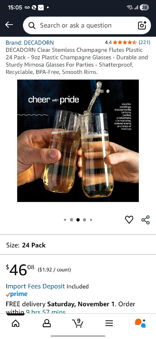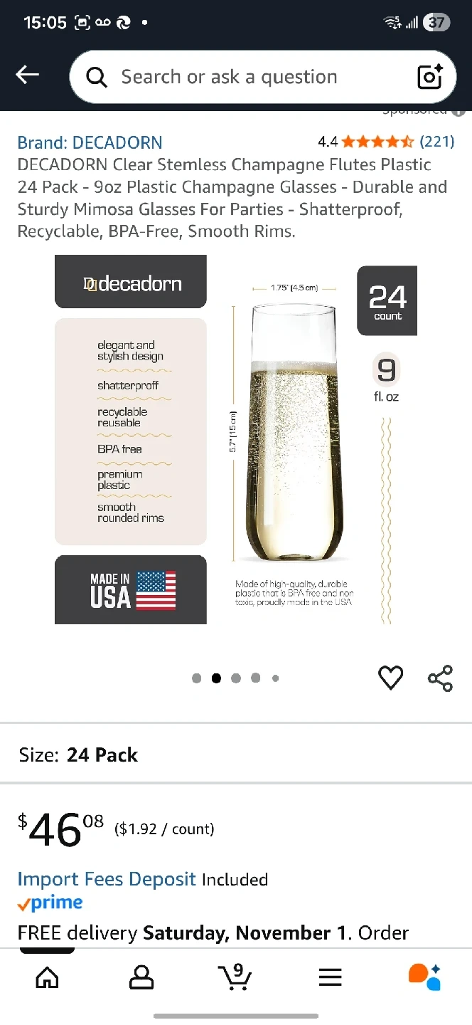 167Selling a 22-pack of clear stemless champagne flutes! These are made of durable plastic, perfect for parties. They're shatterproof, recyclable, BPA-free, and have smooth rims. retail price $46.08.