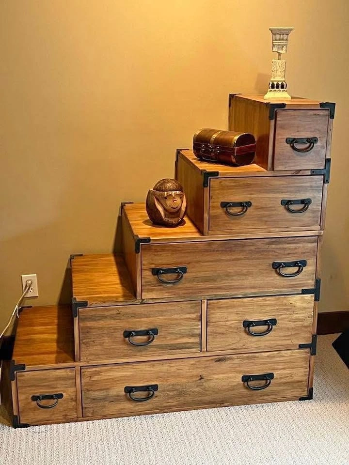 5Unique and beautiful piece! (That I have some resistance to part with- but need to start thinking of downsizing ). Top two levels sits on top of bottom three. Solid wood construction with dovetail joinery. Measures 23" deep x 50" x 50". A few minor scratches and one loose drawer handle. Otherwise still stunning! Have had it for about 30 years...when things were made with real wood. Pick up in Oakmont St. Albert (will need 2 people to move bottom piece) Serious offers considered.