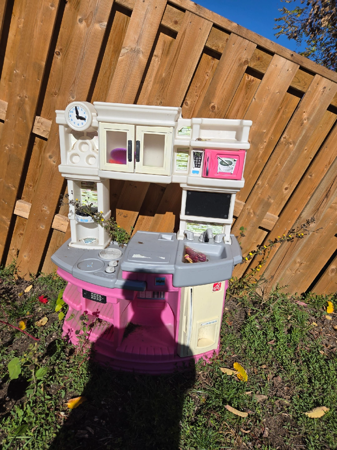 65Selling a Step2 play kitchen! It's pink and grey and has a little sink, stove, and oven. Perfect for kids who love to pretend play!