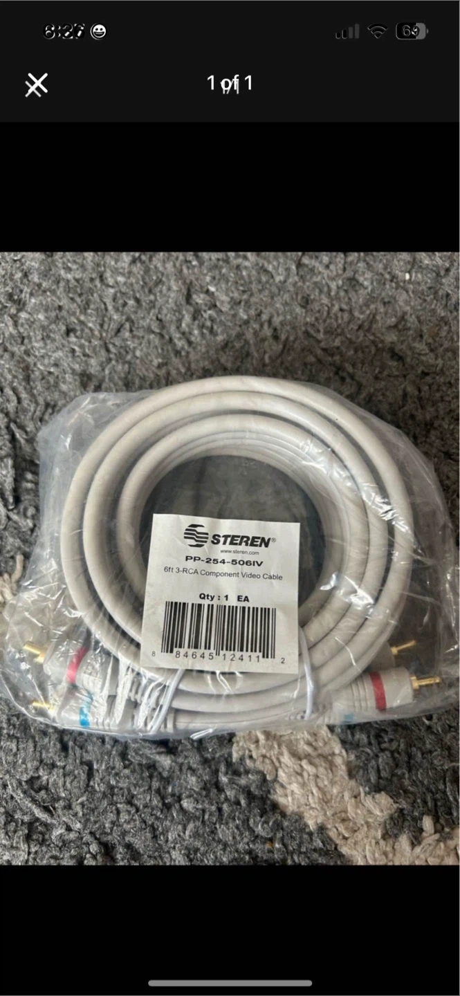 124Selling a brand new STEREN 6ft 3-RCA Component Video Cable! Still in its original packaging, it's ready to connect your devices with ease