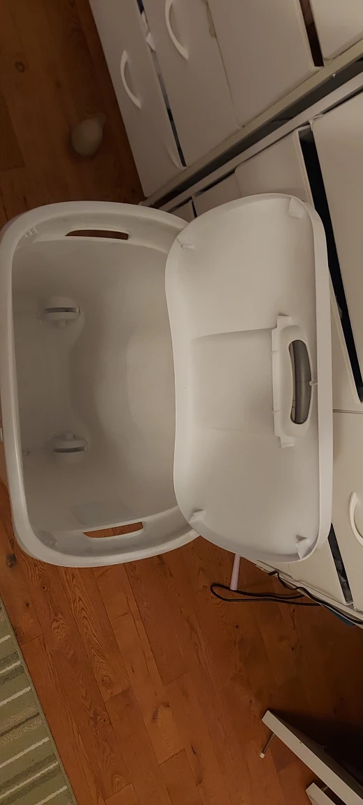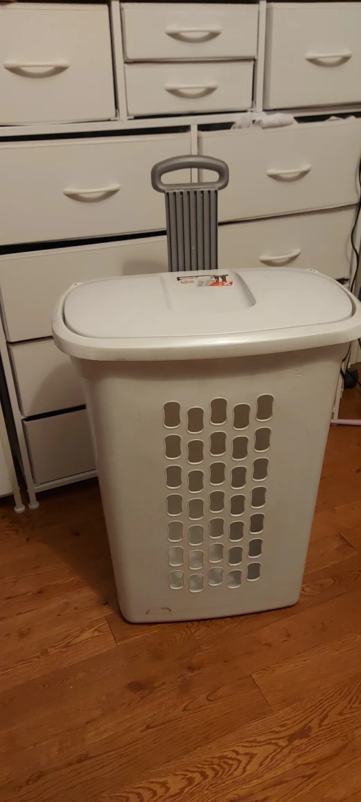 85Selling a Sterilite rolling laundry basket in white. It's in great shape and ready to help with your laundry needs! The rolling feature makes it easy to move around, especially when it's full of clothes