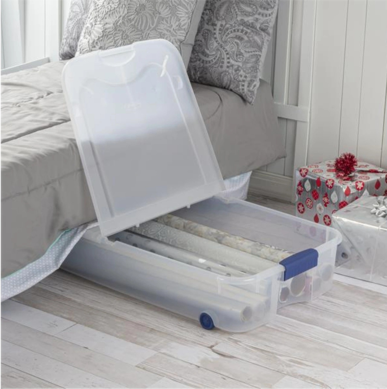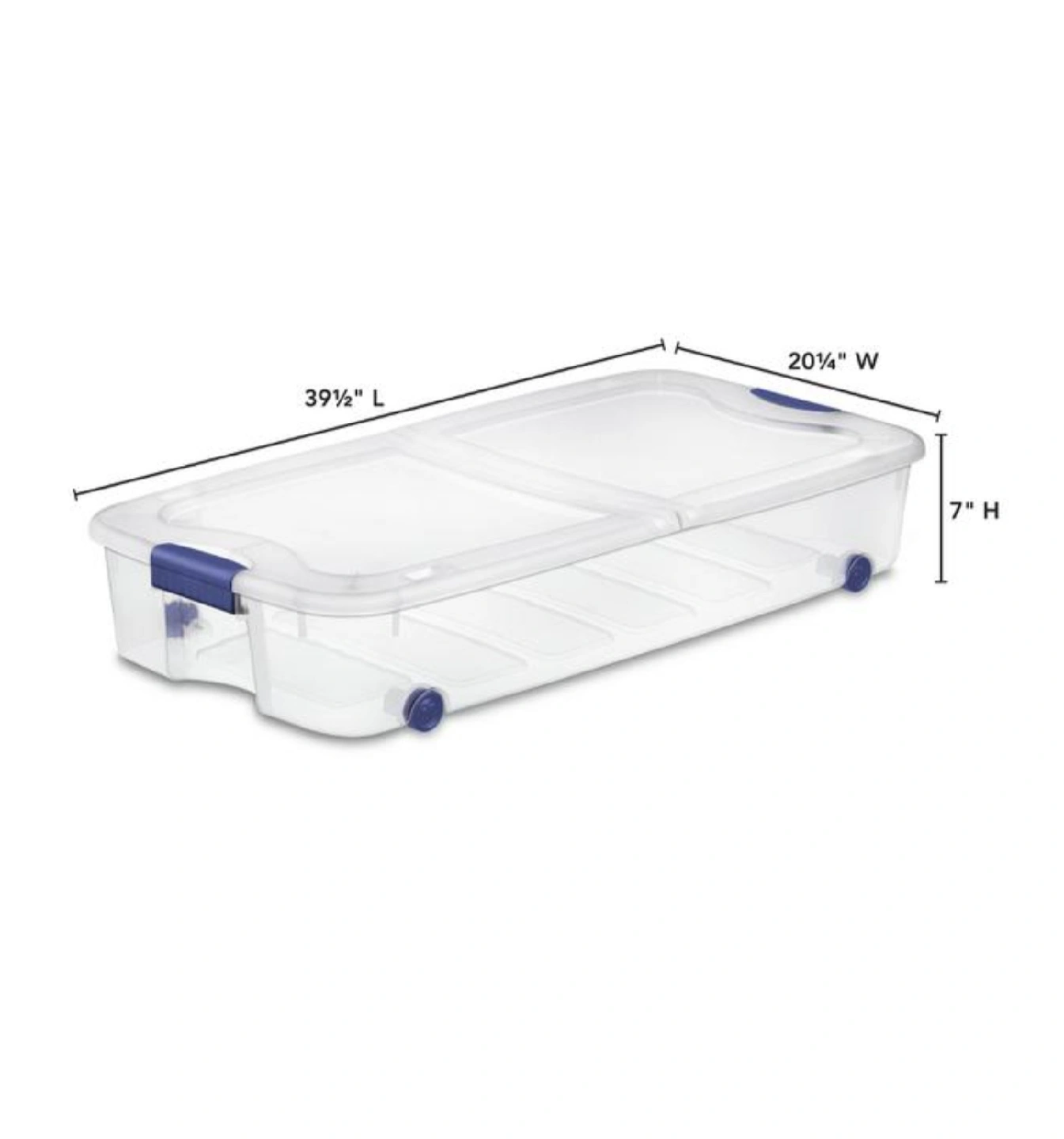 Sterilite Ultra Wheeled Underbed Storage Box, 62 L, Stadium Blue