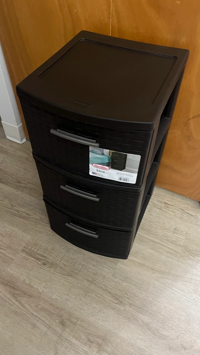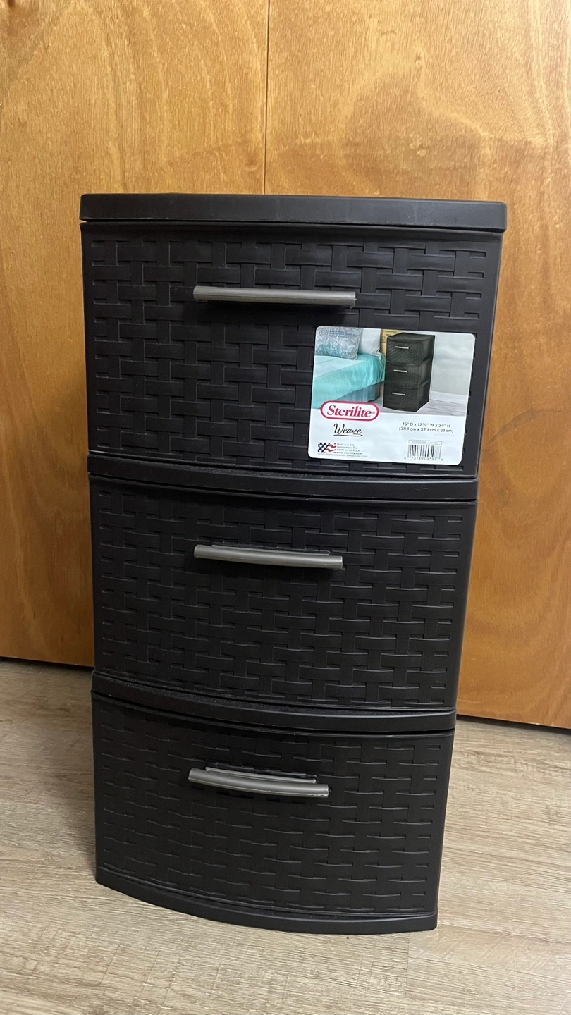 12Looking to organize your space? I'm selling a Sterilite Weave 3-drawer storage tower in black. It's perfect for adding extra storage to any room. The weave pattern gives it a nice look, and the drawers are a good size for storing all sorts of things