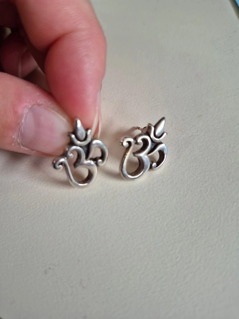 Selling a pair of sterling silver Om symbol earrings. They're in great condition and ready for a new home! STERLING SILVER "925 STAMPED" FILIGREE DESIGN EARRINGS