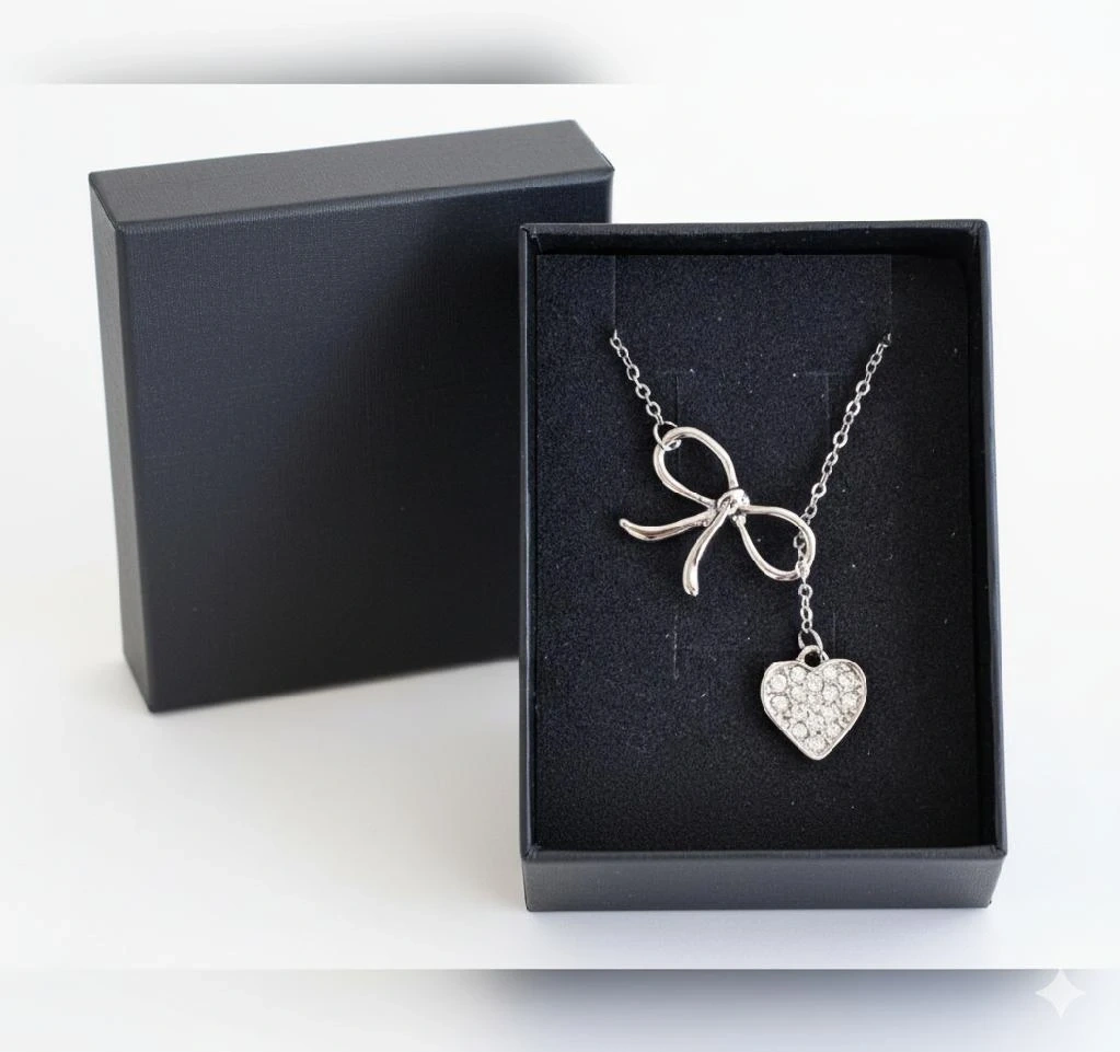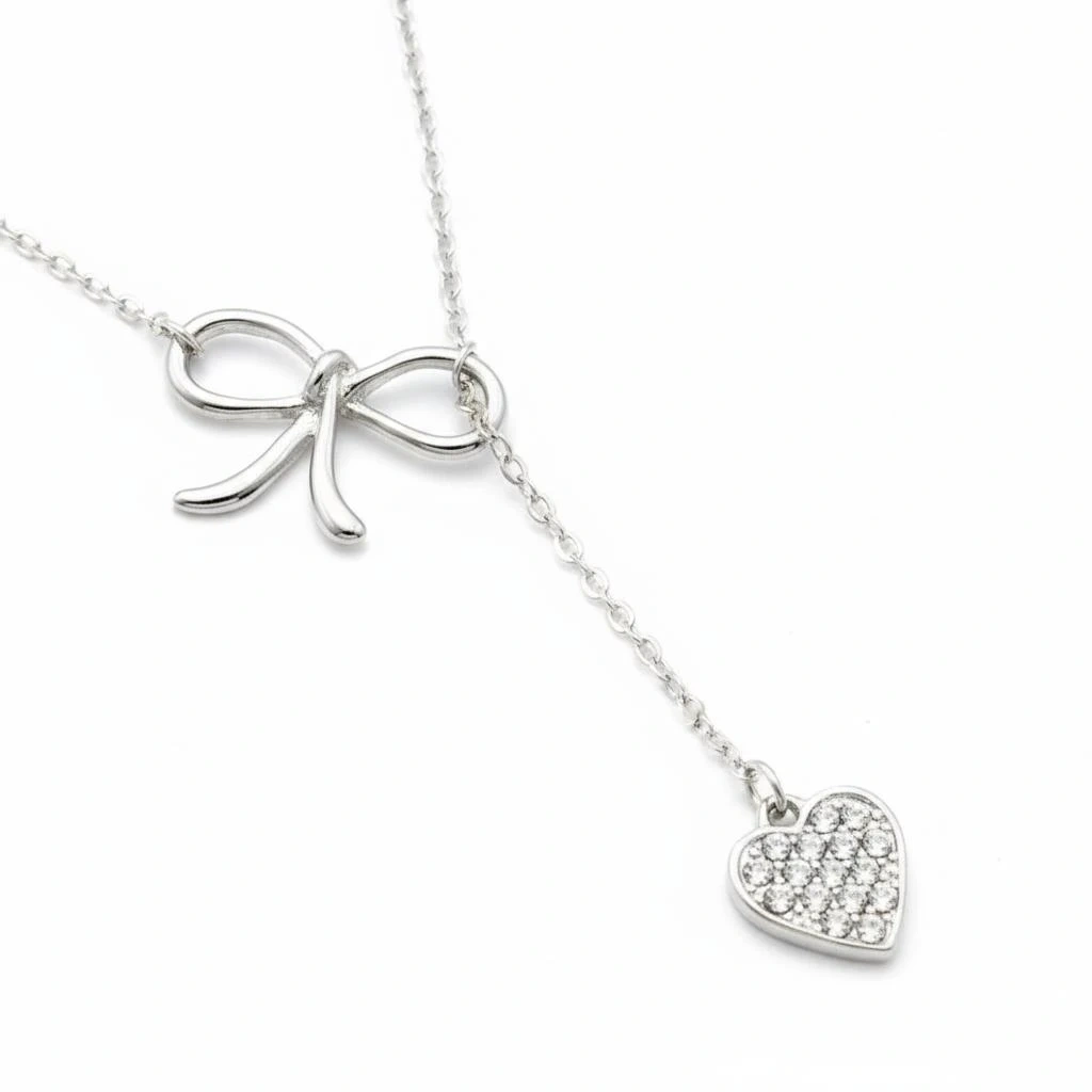 10🎉 Flat-Rate $5 Shipping! Get your sparkle delivered straight to your door without breaking the bank. Elevate your style with this dainty sterling silver overlay lariat necklace. It features an elegant bow and a sparkling heart pendant with genuine Swarovski Crystals. The adjustable lariat design makes it a perfect fit for any neckline. This beautiful necklace is a timeless gift for a birthday, anniversary, or any• special occasion. It arrives ready to give in a lovely gift box. Features: • Material: Sterling Silver Overlay • Gemstone: Authentic Swarovski Crystals • Length: Adjustable lariat design • Style: Dainty & chic • Ready to Gift: Includes a gift box