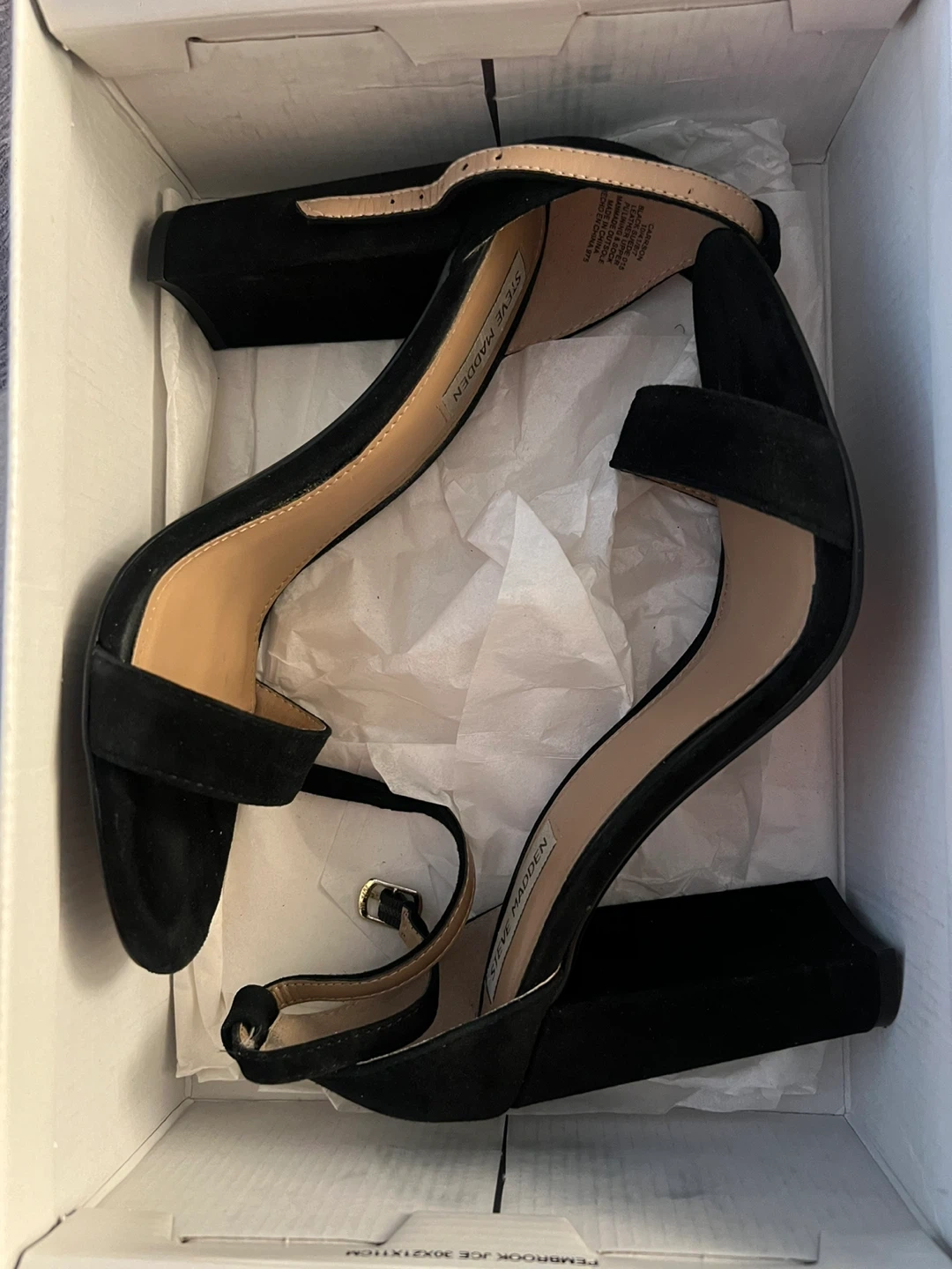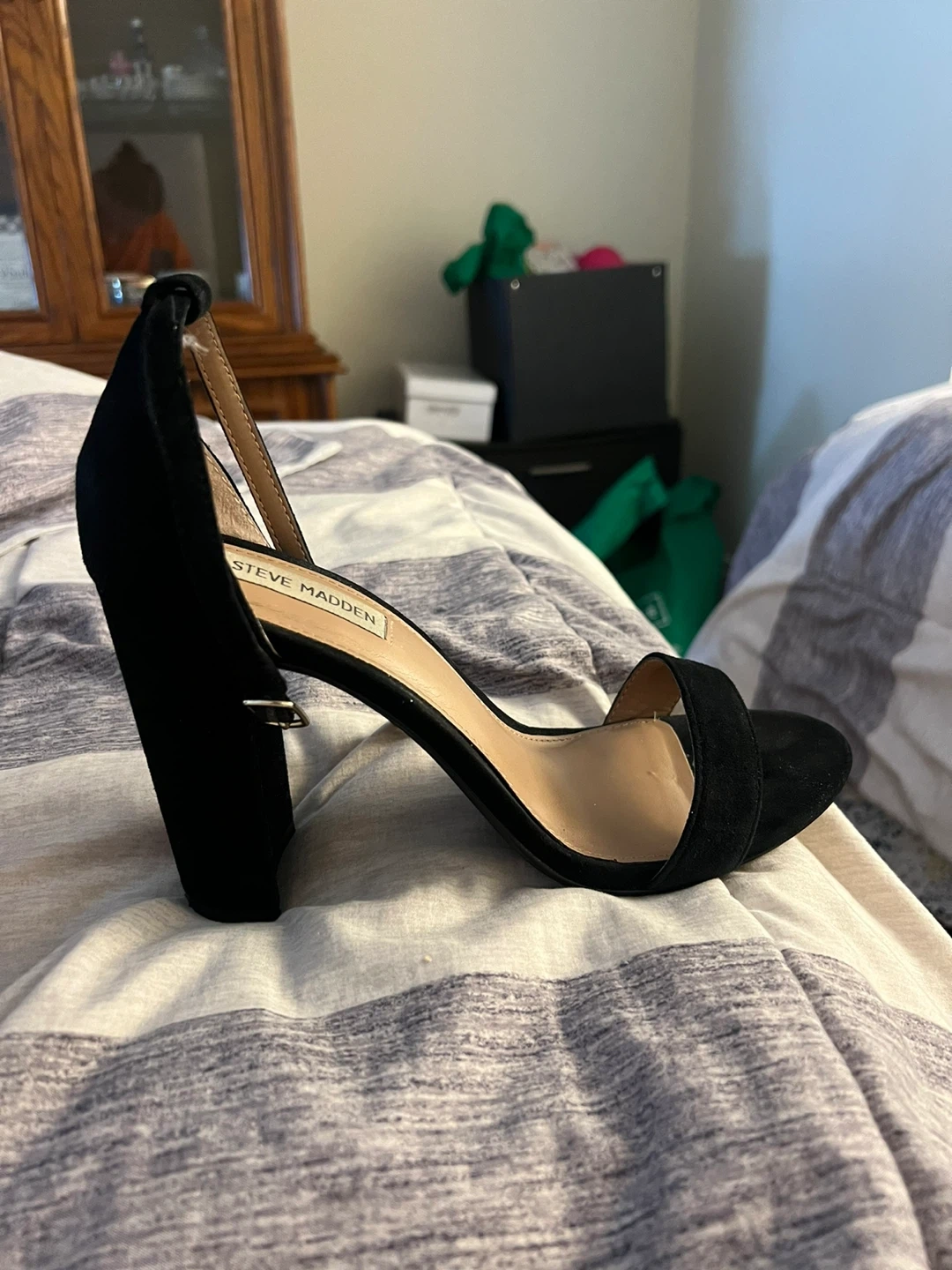 15Selling a pair of Steve Madden black heels. They are in great condition and come with the original box! Perfect for a night out or any special occasion