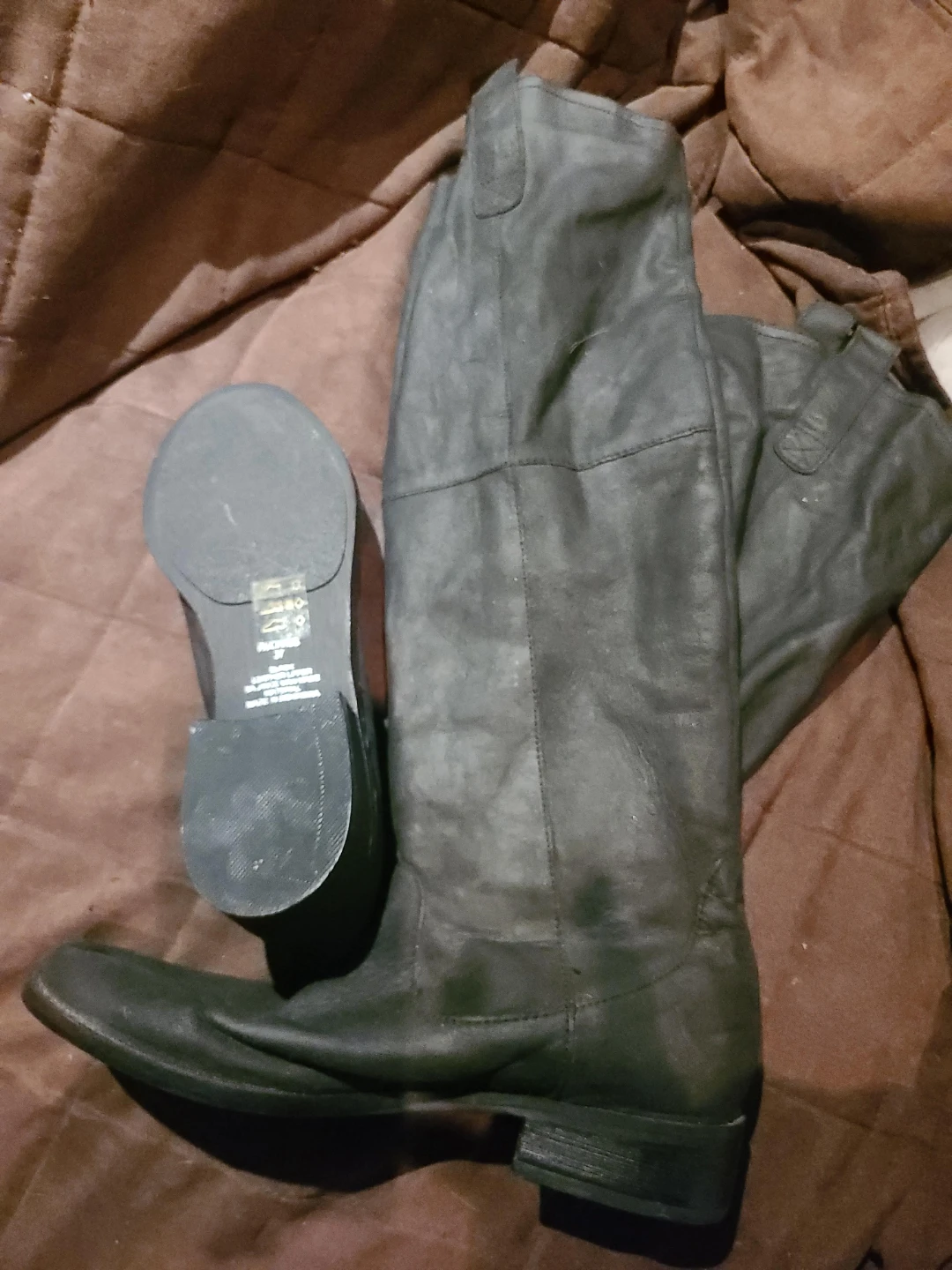 60Selling a pair of nubuck leather suede-feel knee-high boots. Steve Madden Ruckkus model, size 37 (women's 7), made of real leather. Never worn outside, but one looks like it was the try-on in store, as it has a price tag on bottom and very minor wear on sole.