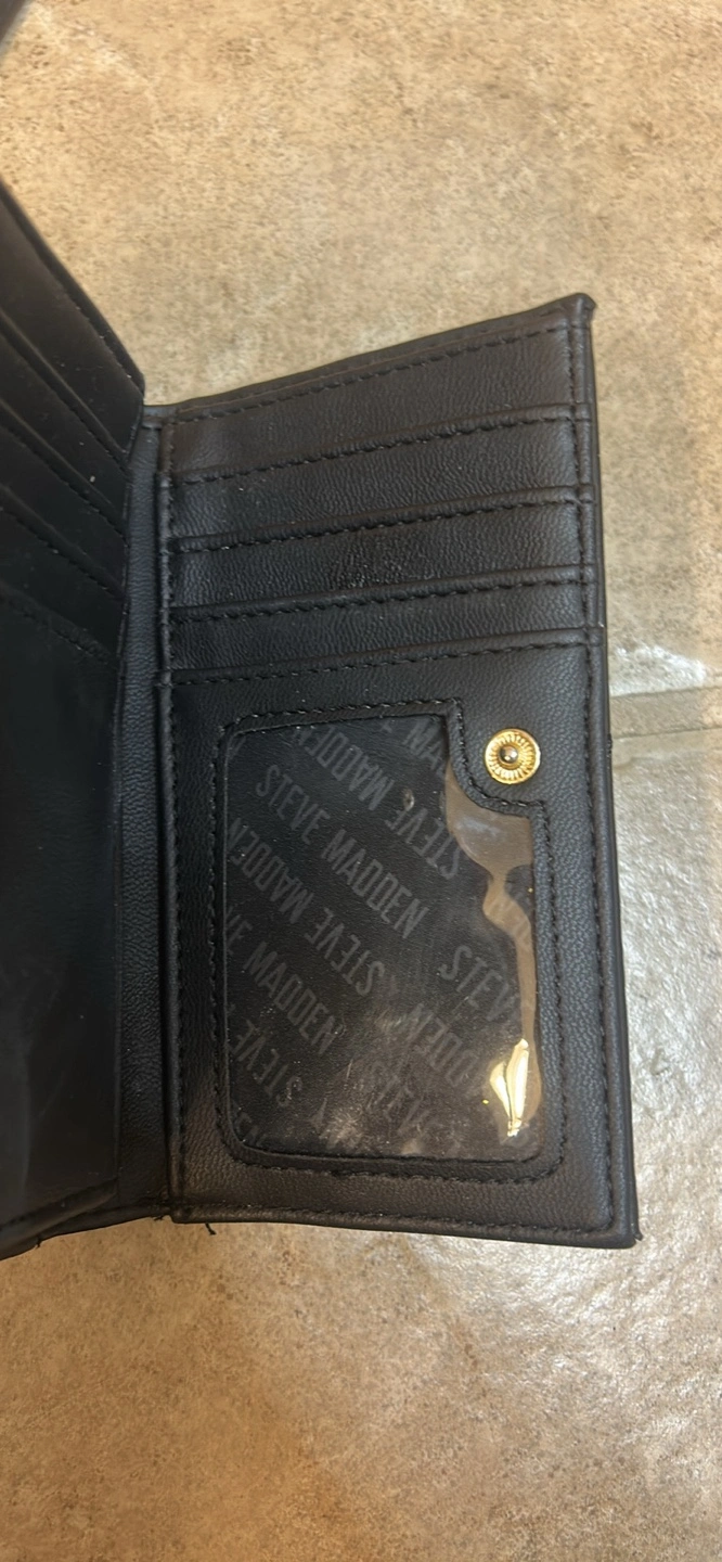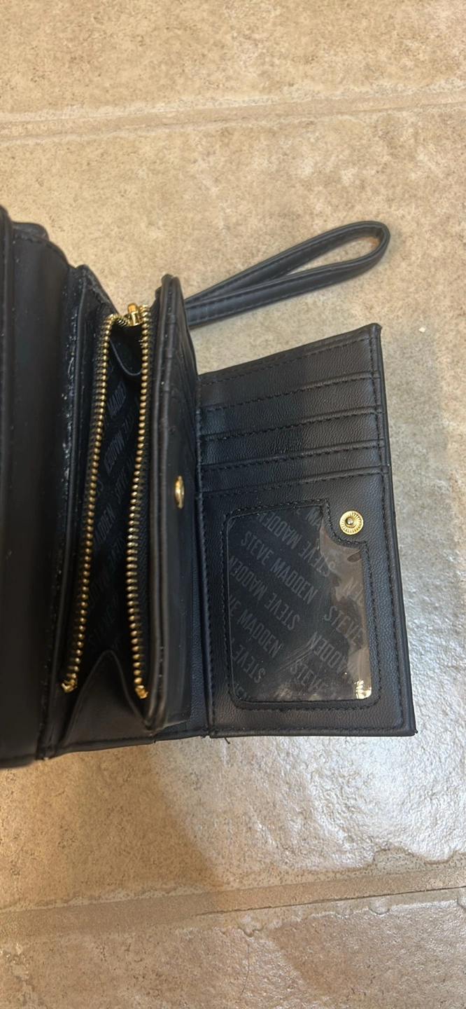 Selling a black Steve Madden wallet! It's in great condition and has lots of space for cards and cash.