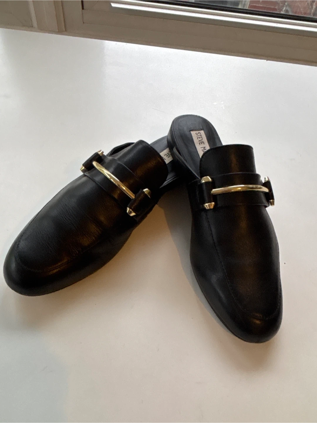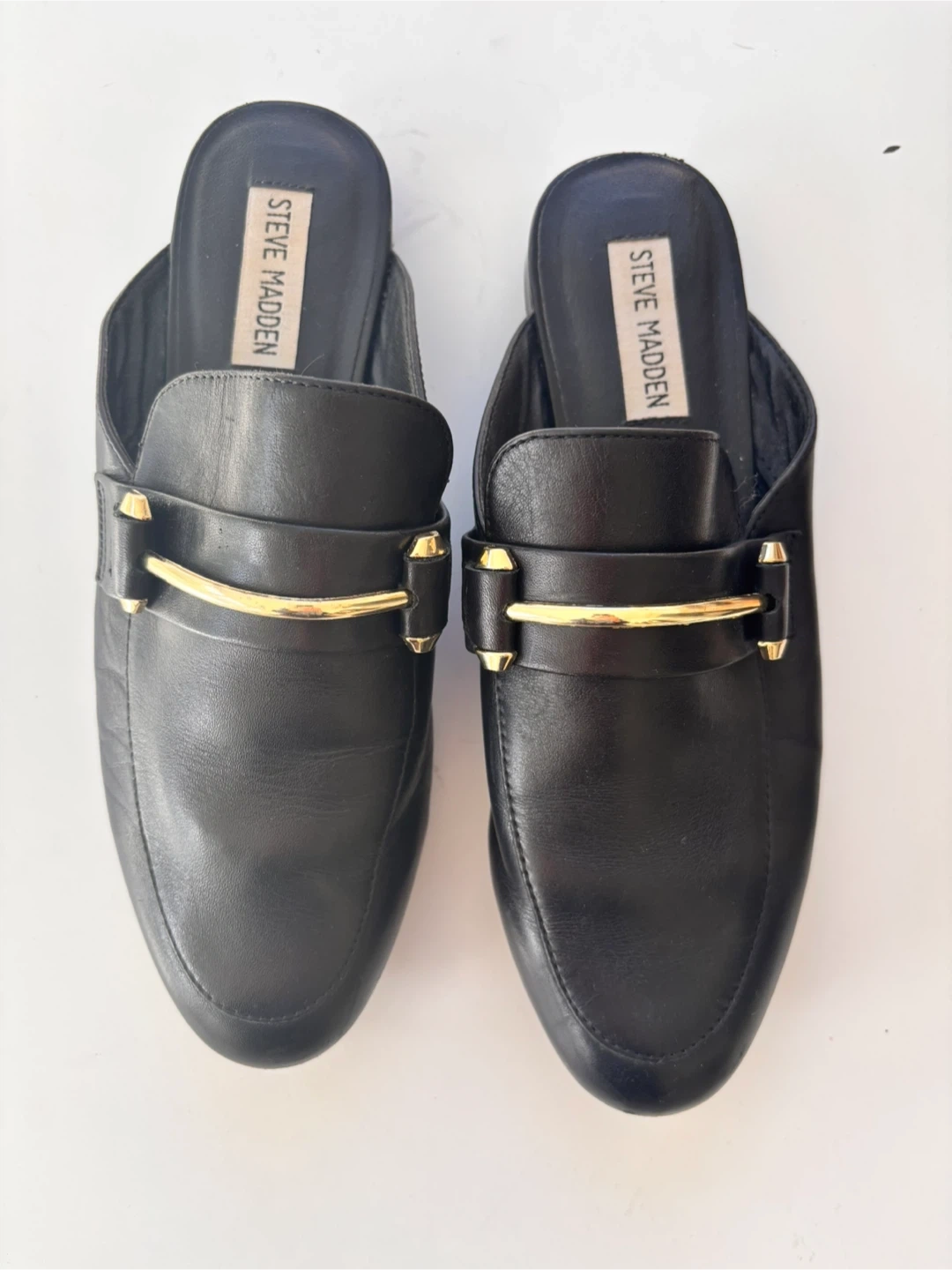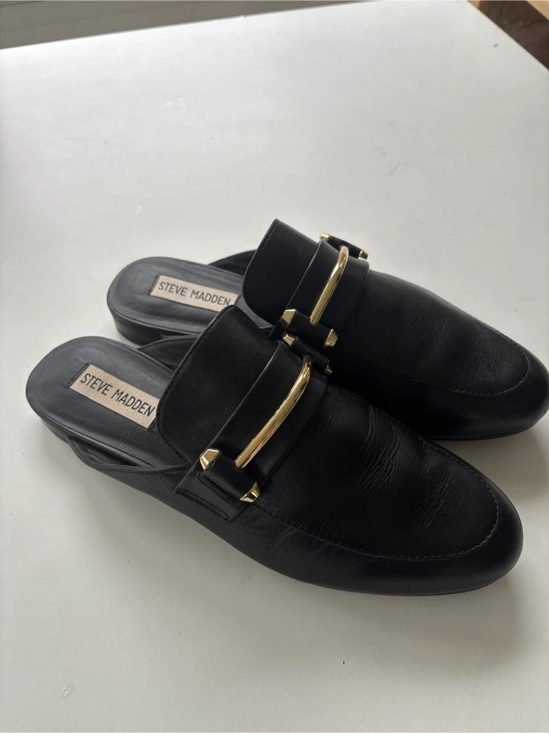 Selling a pair of Steve Madden Kera mules in black leather. They are a size 8M. These stylish mules feature a leather upper and a man-made outsole. Perfect for adding a touch of sophistication to any outfit!