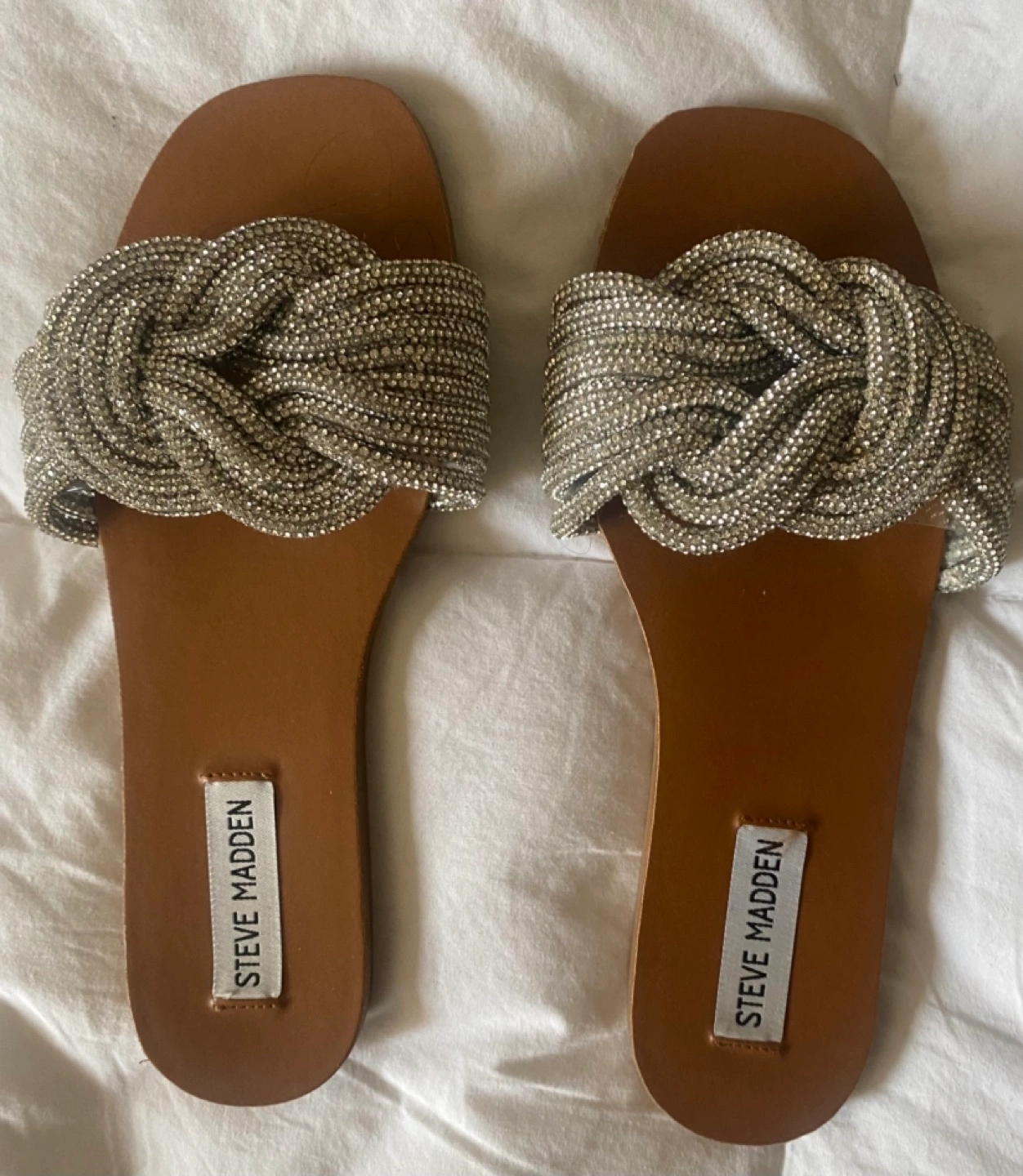 309Brown sandals with rhinestone straps. Worn once. In excellent condition