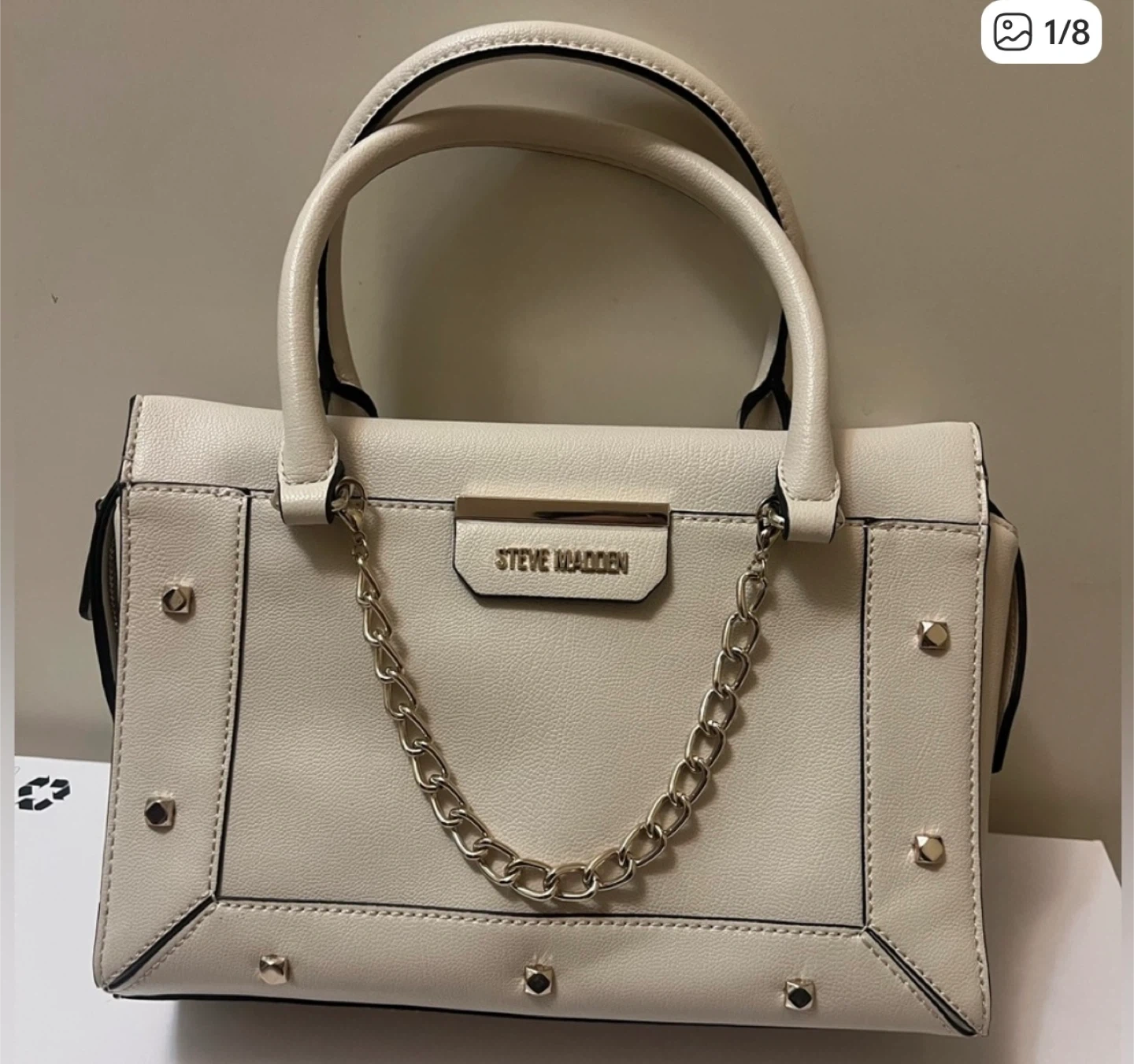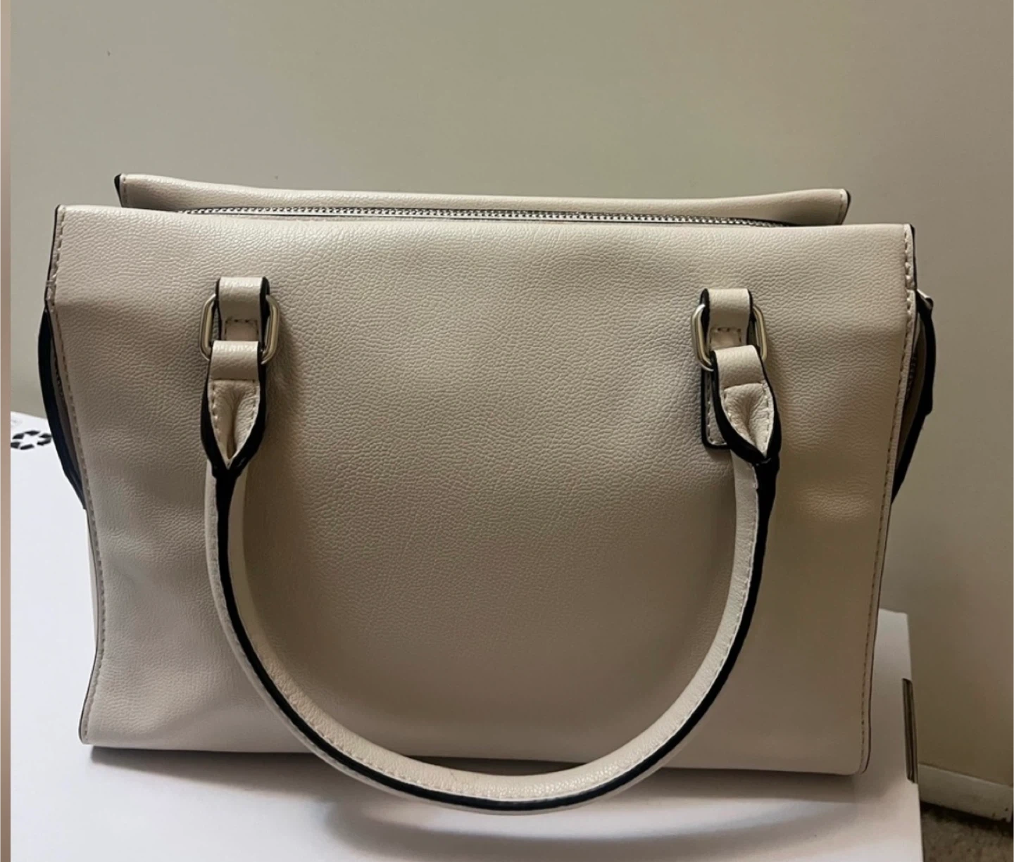 Color cream Gold hardware Dual rolled top handles Crossbody adjustable and detachable strap Faux leather W: 11.5”, H:8”, D: 4” Worn once, like new