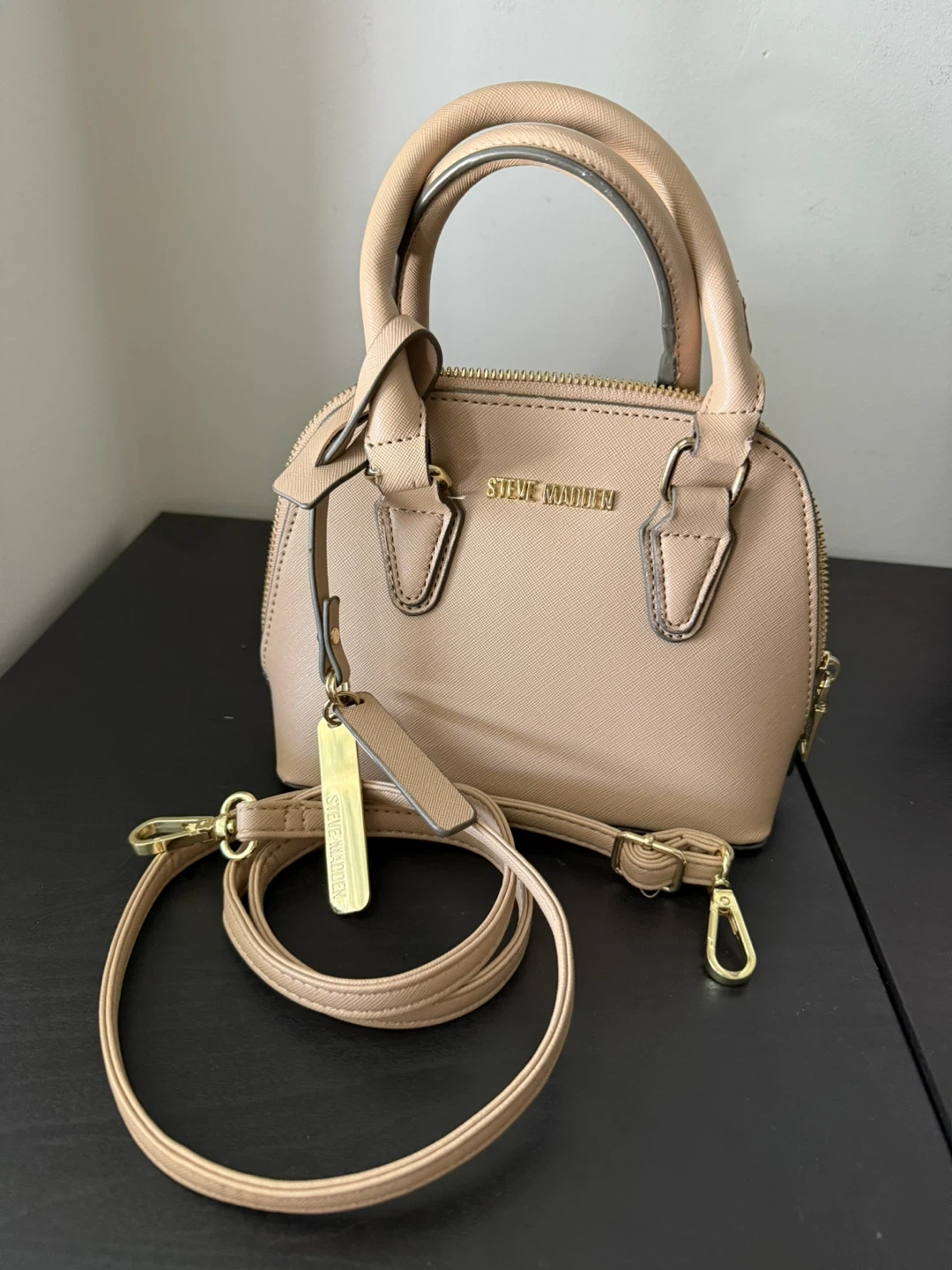 60Selling a Steve Madden dome satchel bag! It's in great condition and comes with a detachable shoulder strap. The colour is a beautiful neutral that goes with everything