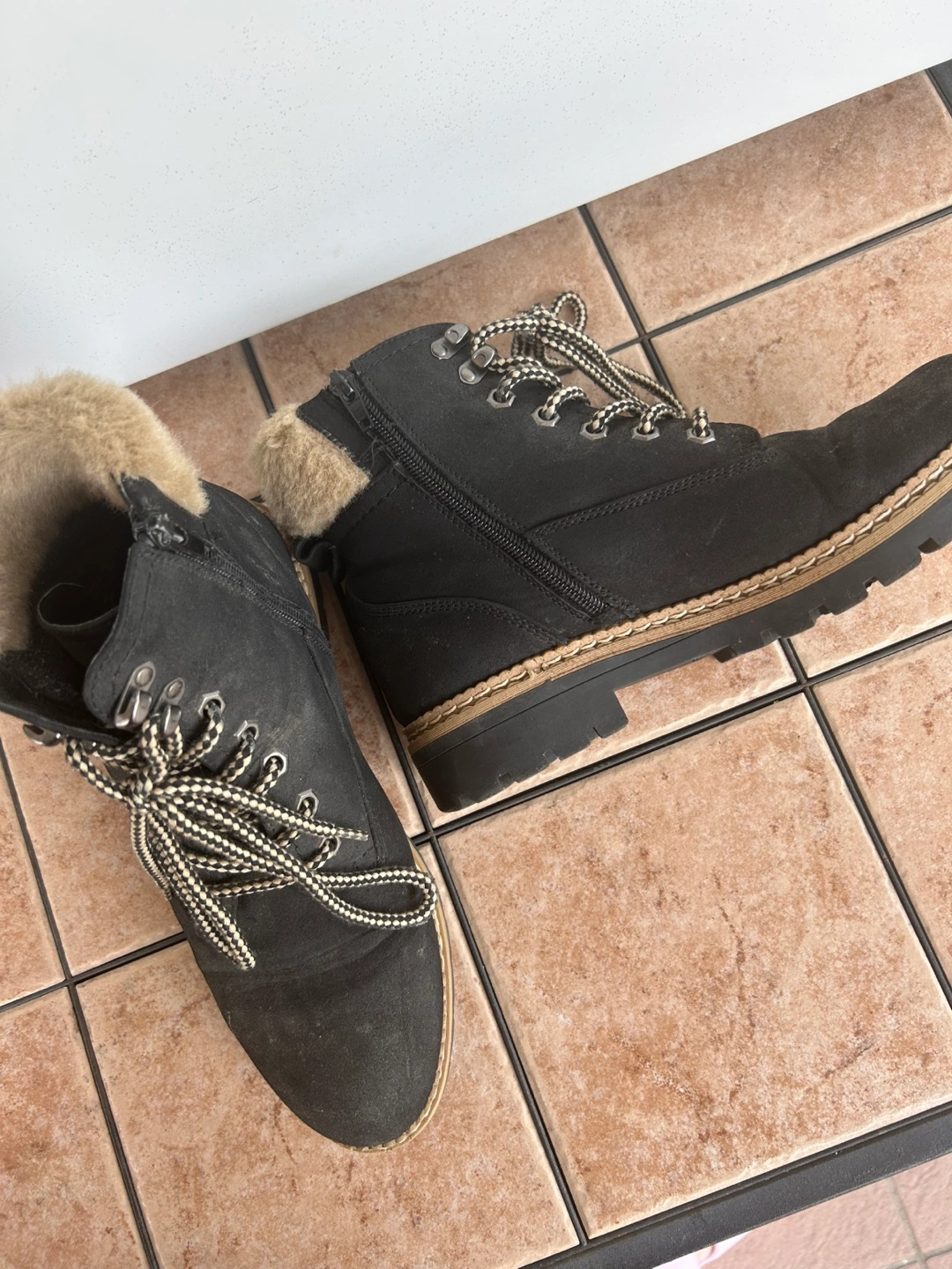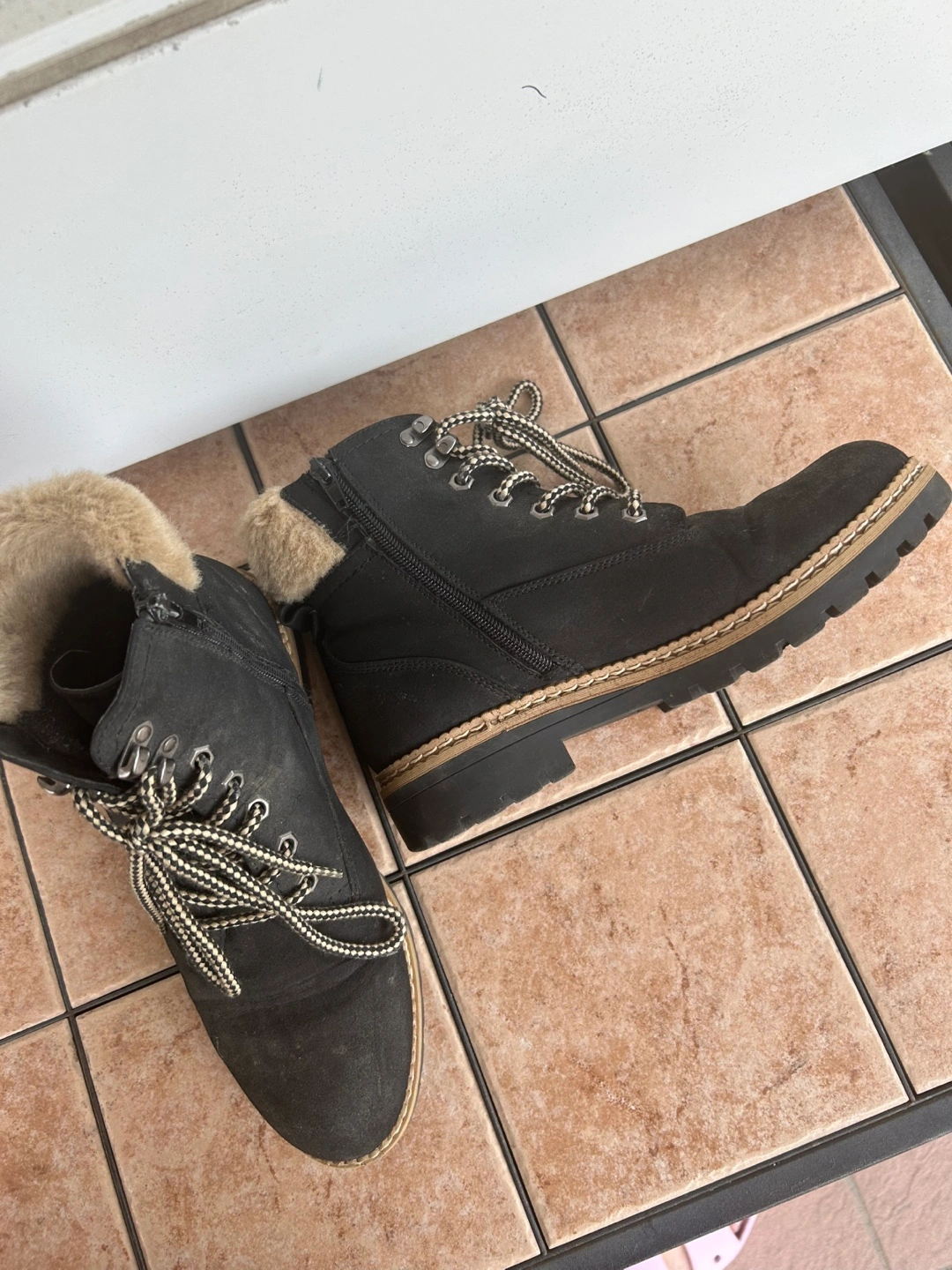 134Size 38 In great condition! Pick up in Scarborough,near huntingwood/mccowan Warm, black winter boots. Lace-up style with faux fur trim. Side zipper for easy on and off. Good tread on the sole.