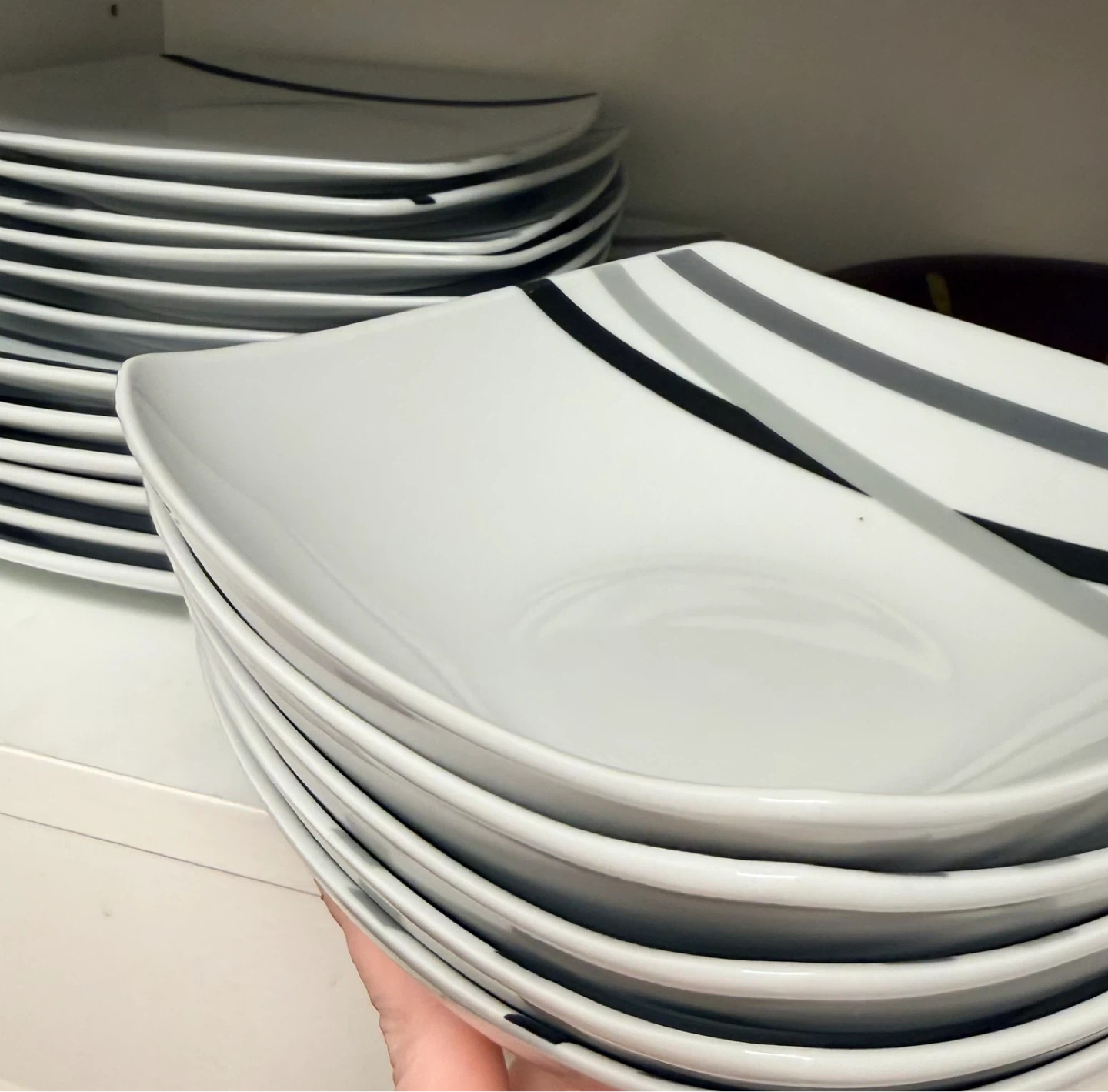 17- Piece Square Dinnerware Set, Dishes, Bowls, Service for 6