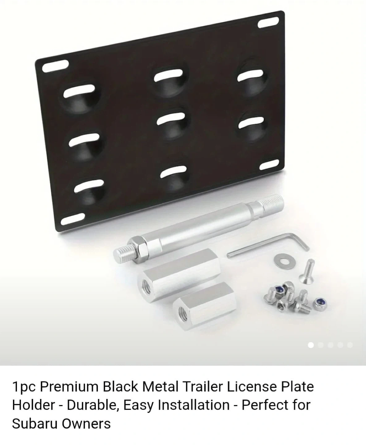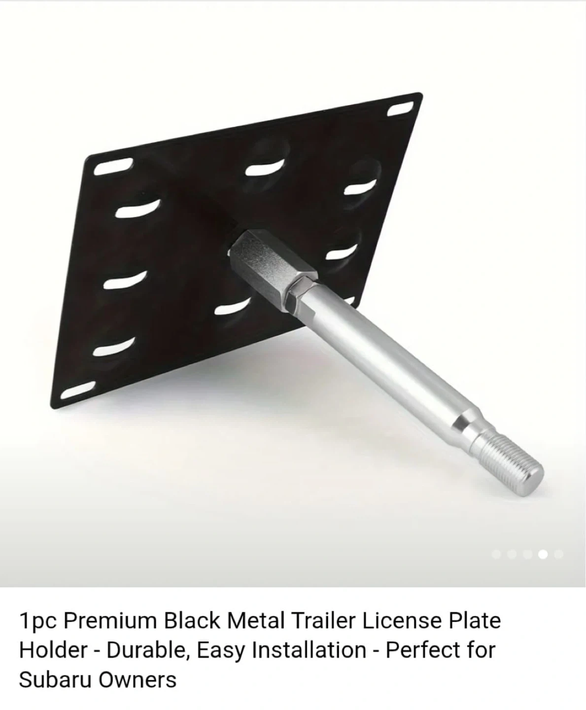 This is a premium black metal trailer license plate holder. It is durable and easy to install. It's perfect for Subaru owners. Brand new in a box.