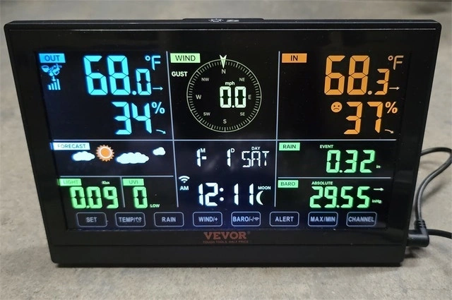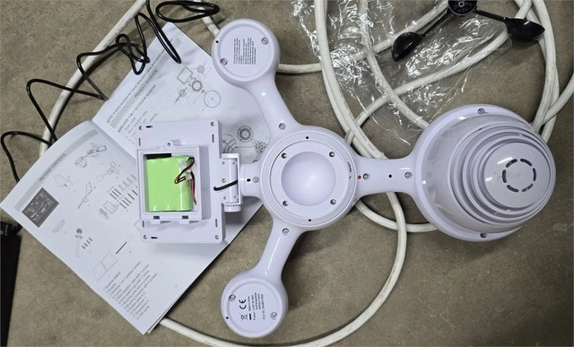 New, inspected and working with box. One small nut is missing which can be easily purchased from the hardware store. Pickup is near Kipling and Evans. Our Wi-Fi weather station provides precise monitoring of wind speed, wind direction, temperature, humidity, rainfall, light, etc. It also displays wind chill, dew point, pressure, calendar, and moon phase. With an IPX6 waterproof level, it can accurately monitor weather changes, even in heavy rainfall. The wireless weather station allows real-time data transfer via Wi-Fi connection and supports Weather Underground & WeatherCloud connections. You can monitor temperature, humidity, wind speed, and light on your smartphone. The solar powered weather station has an extra long transmission distance of 150m. The large HD screen makes it easy to read the weather data! The digital weather station has a 4-level dimming function. The time is automatically synchronized with the internet, and the alarm has a snooze function. The wireless home weather station is equipped with a solar panel to store power. The sensor adopts rechargeable Ni-MH batteries. Only supports 2.4GHz Wi-Fi, does not support 5GHz Wi-Fi. Cash and cashless payments accepted.
