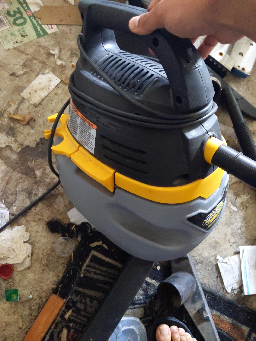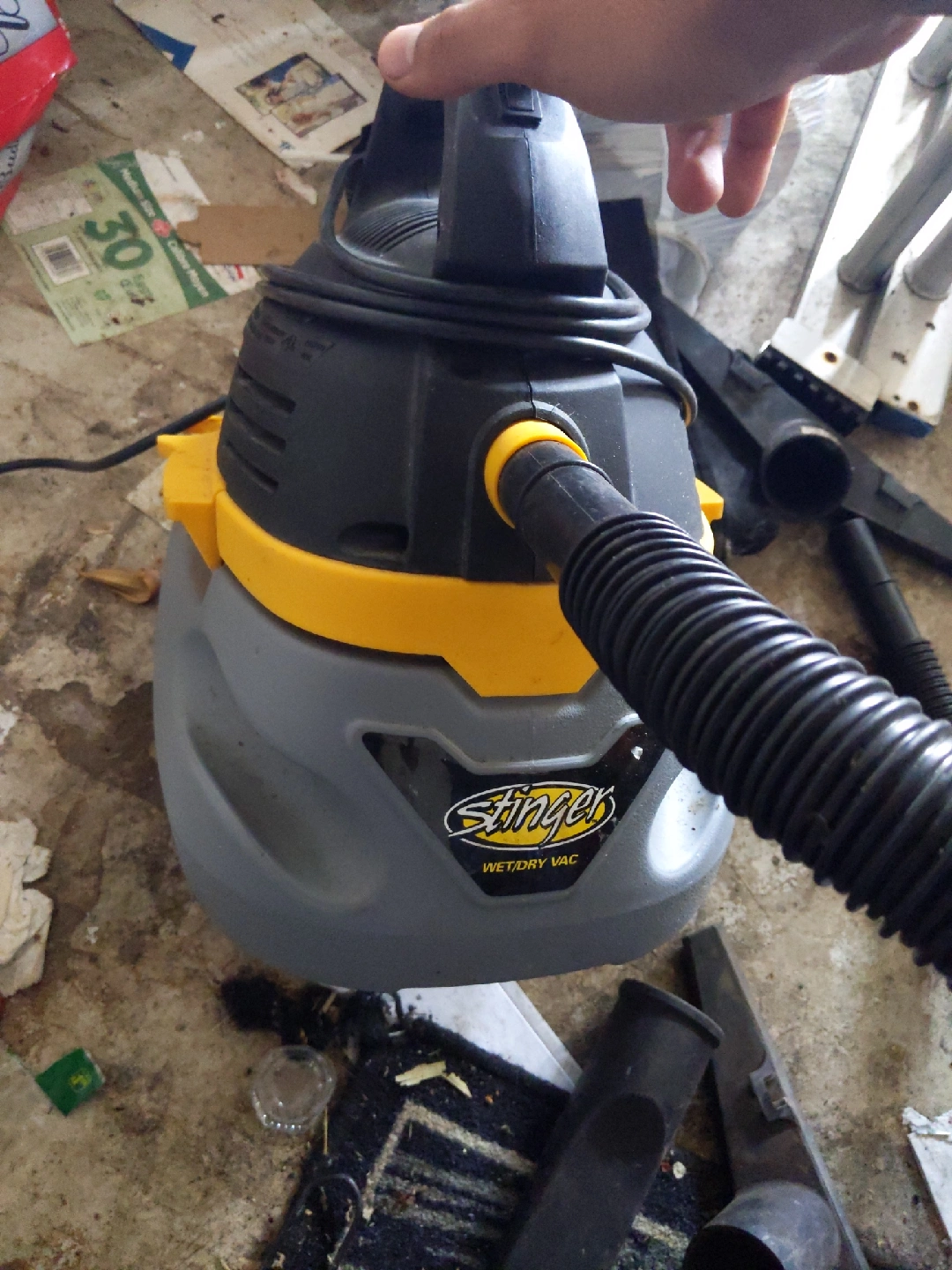 Selling a Stinger Wet/Dry Vac. It's in used condition but still works great for cleaning up messes. Perfect for the garage, workshop, or anywhere you need a powerful little vacuum!