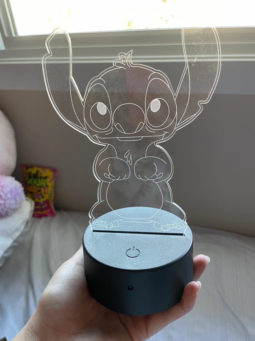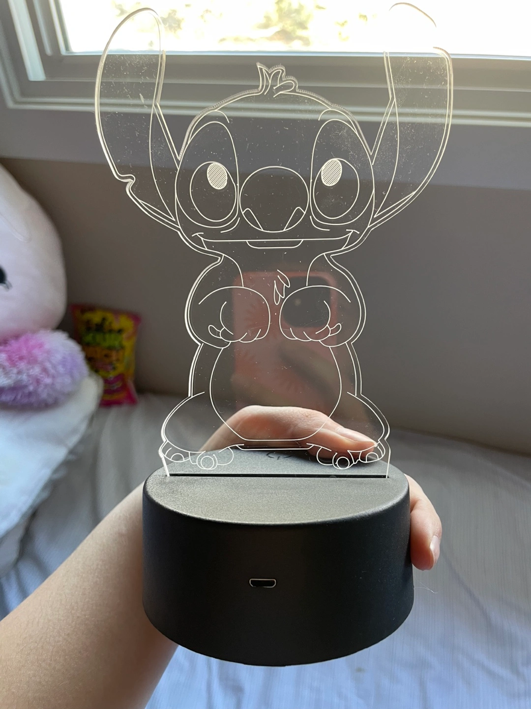 Cute Stitch night light. Acrylic design. USB powered. Comes in original box. Great for bedrooms or kids' rooms. Comes with charger no block