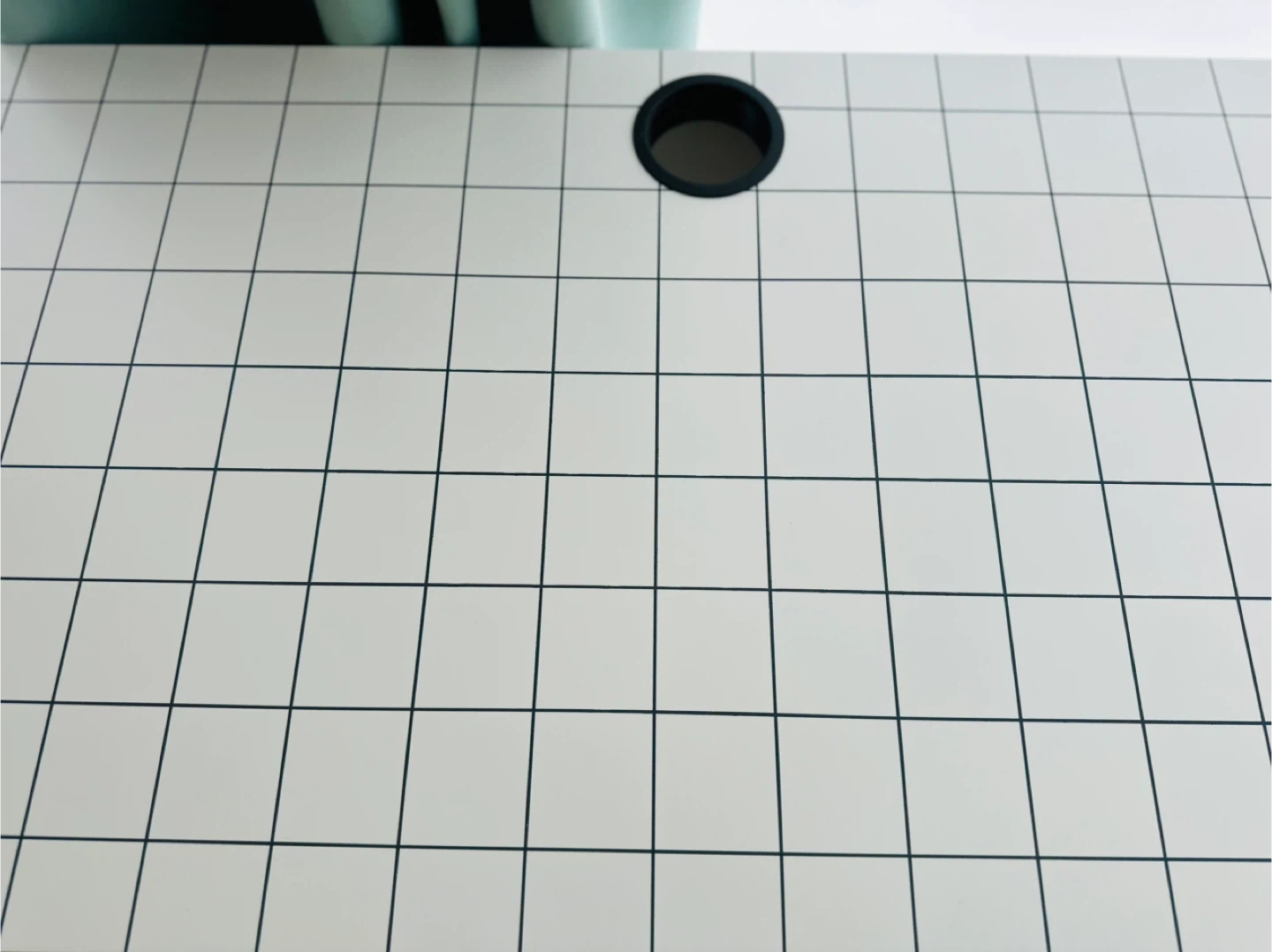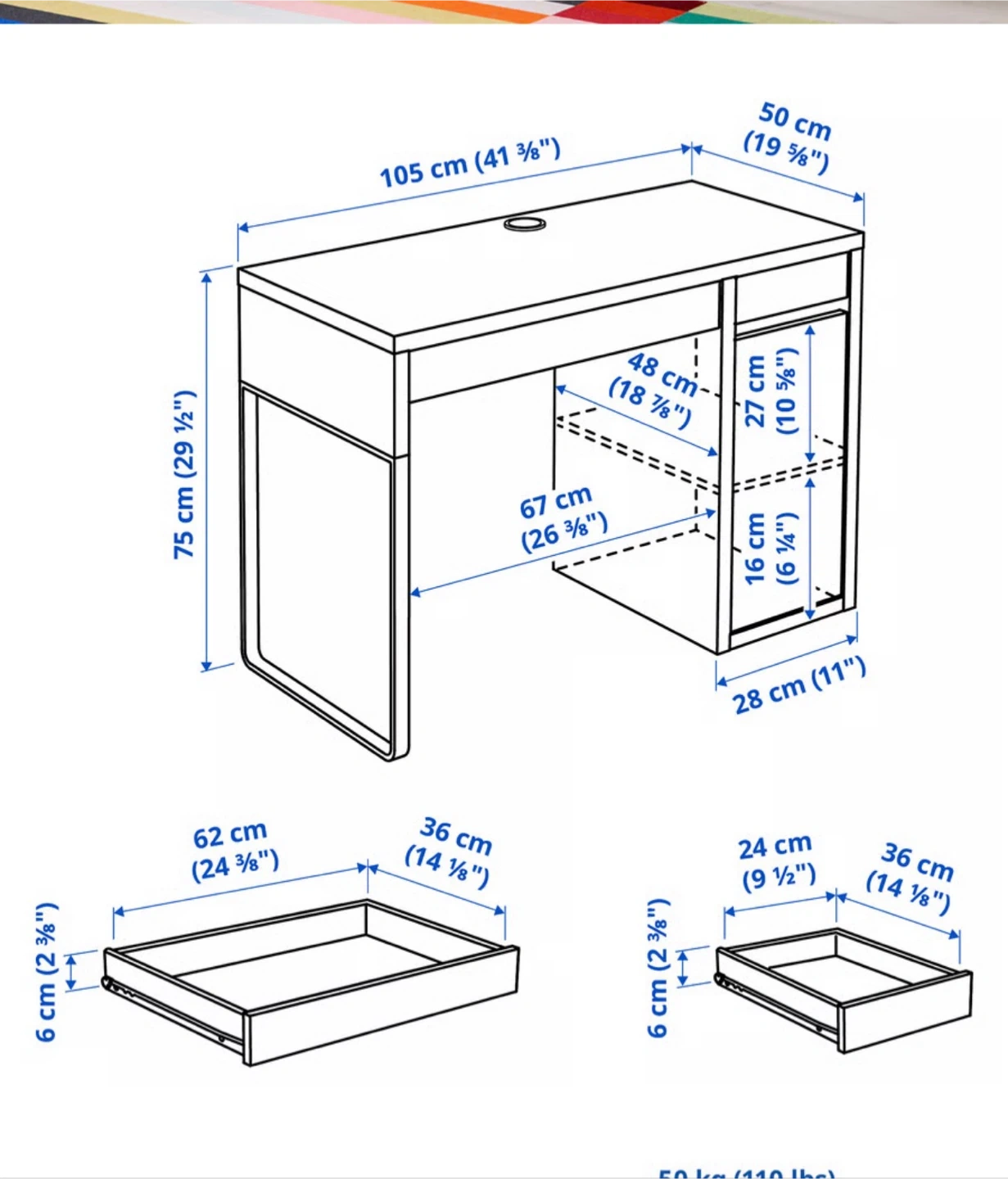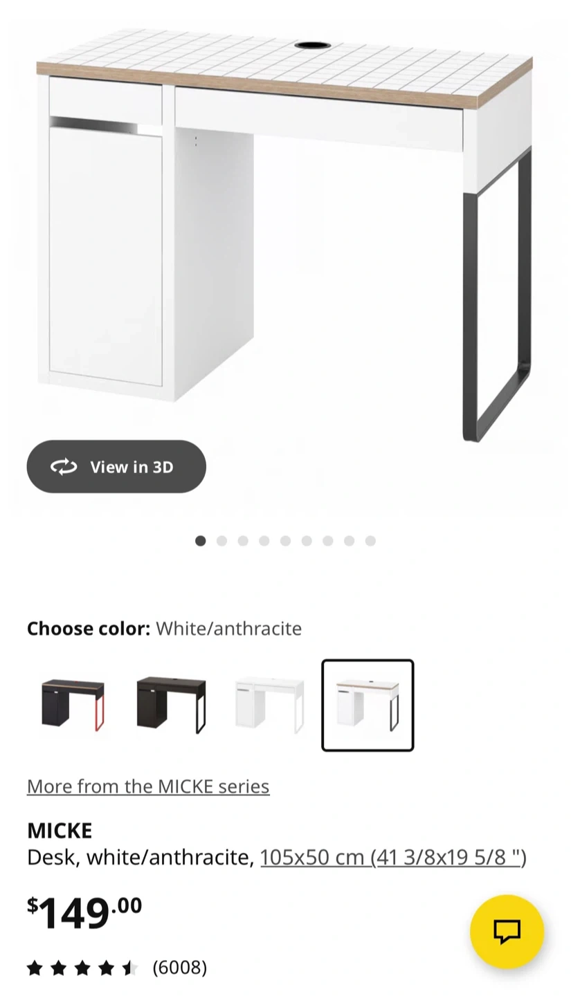 Versatile IKEA desk. Has a cool grid pattern top, great for games like checkers or even as a craft table. Built-in storage cabinet with shelves and a drawer. Also has a cable management hole to keep things tidy. Super useful for a bedroom or office space.