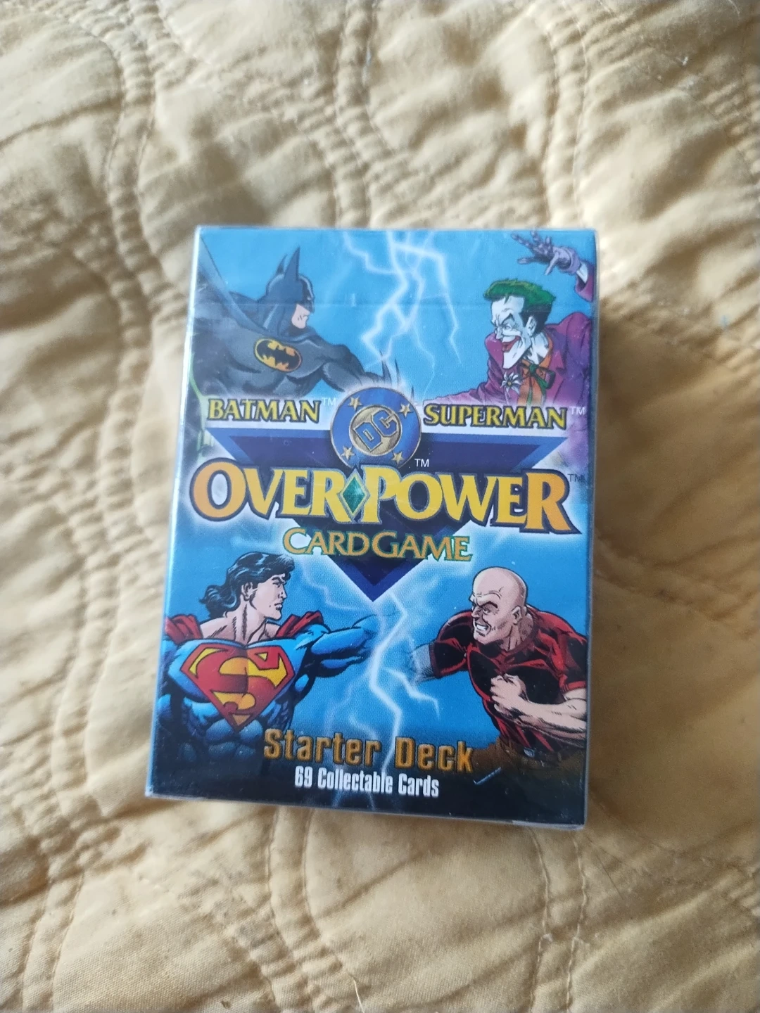 Batman and Superman OverPower Collectible Card Game Starter Deck produced in 1996. It contains a rulebook and 69 collectible cards. Build your own dream team with heroes and villains from DC Comics!