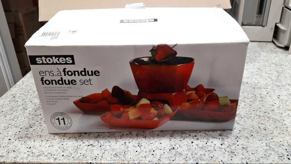 85Hardly ever used and still in good condition. The only thing that's tattered is the box. Other than that, everything else is pretty good. Included in the set are the forks, the trays, and also the main dipping and heating unit.