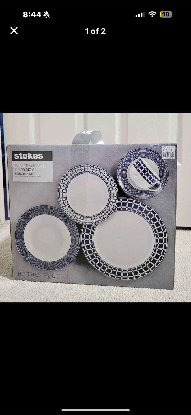 10Selling a brand new Stokes Retro Blue 20-piece dinnerware set! It's still in the box and has never been used. The original price was $79.99. This set is perfect for adding a touch of retro style to your dining experience
