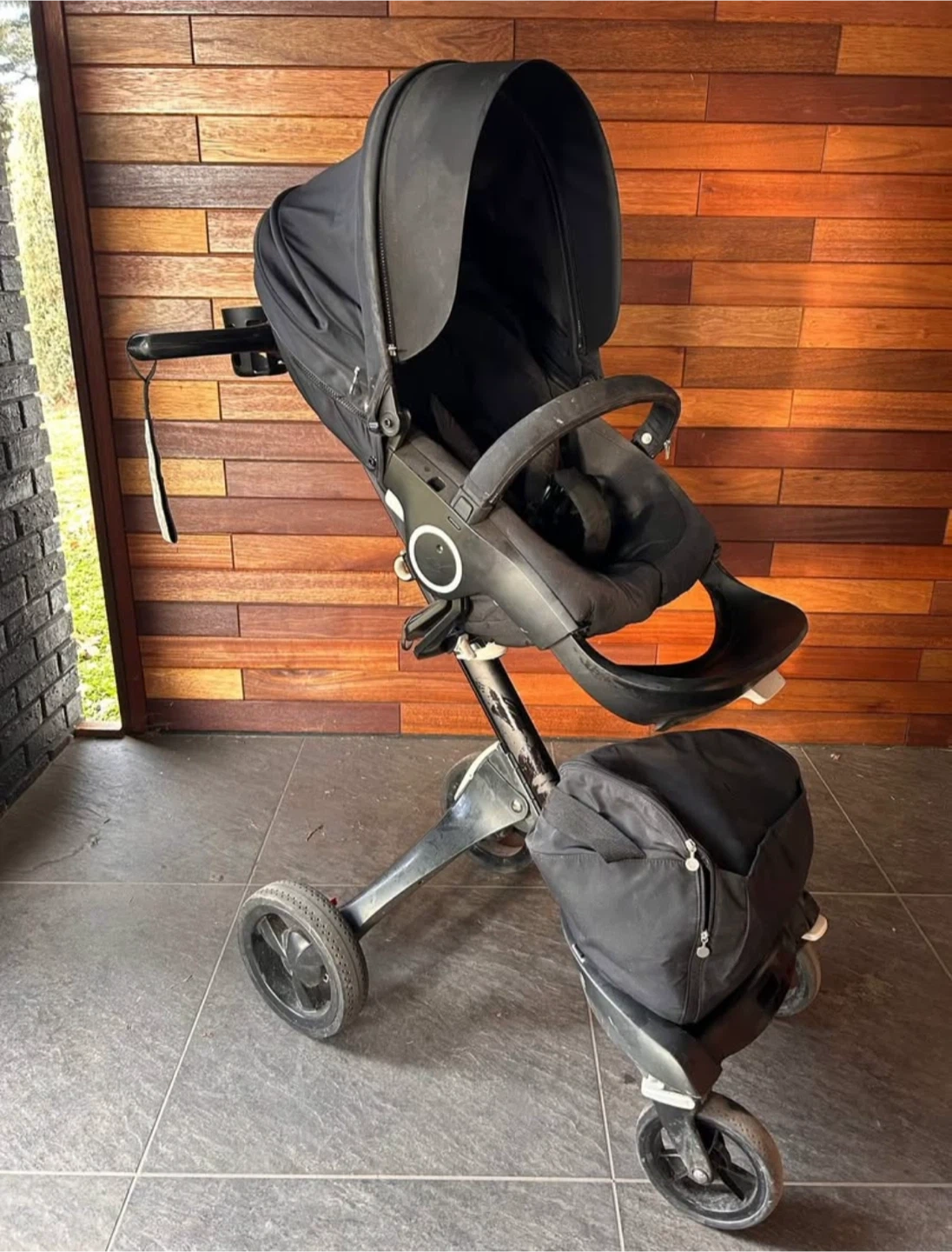 20Over $1200 new, this stroller is the Rolls Royce of baby strollers. The Stokke Xplory 6 Stroller comes with all accessories, car seat adaptors, umbrella, cup holder, diaper bag, and rain shied.