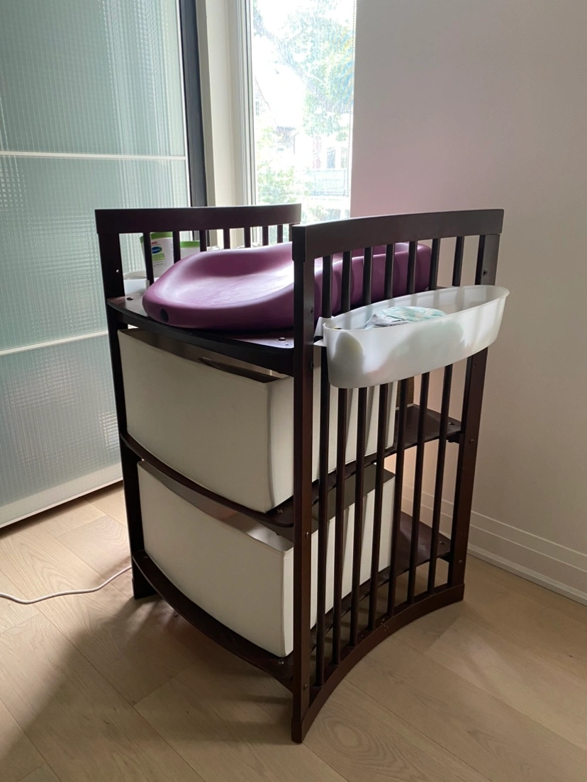 Beautiful real wood change table, can be converted to a child desk or storage shelf for future use. Pick up at Spadina & College