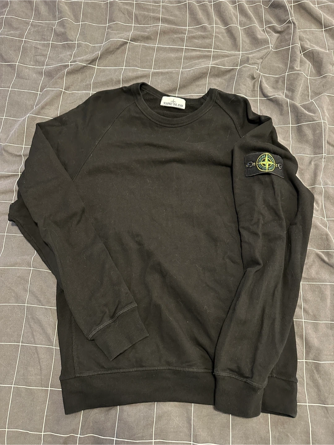 Selling a Stone Island crewneck in black, size large. Runs a bit small, fits more like M.