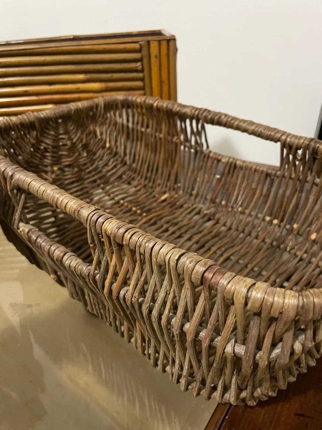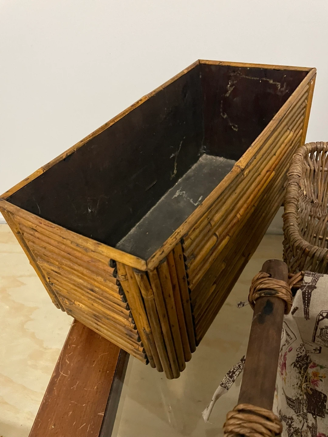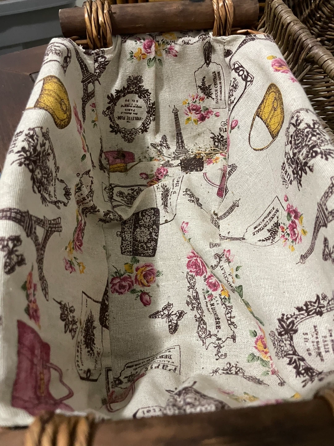 466Selling a set of three storage baskets in good condition. Bamboo/rattan style: L 17” W 8” H 7.5” Wicker with Parisian fabric liner design: L 11.5” W 7” H 5.5” Plain wicker: L 14” W 8.5” H 5” Take all for $15! 🧺