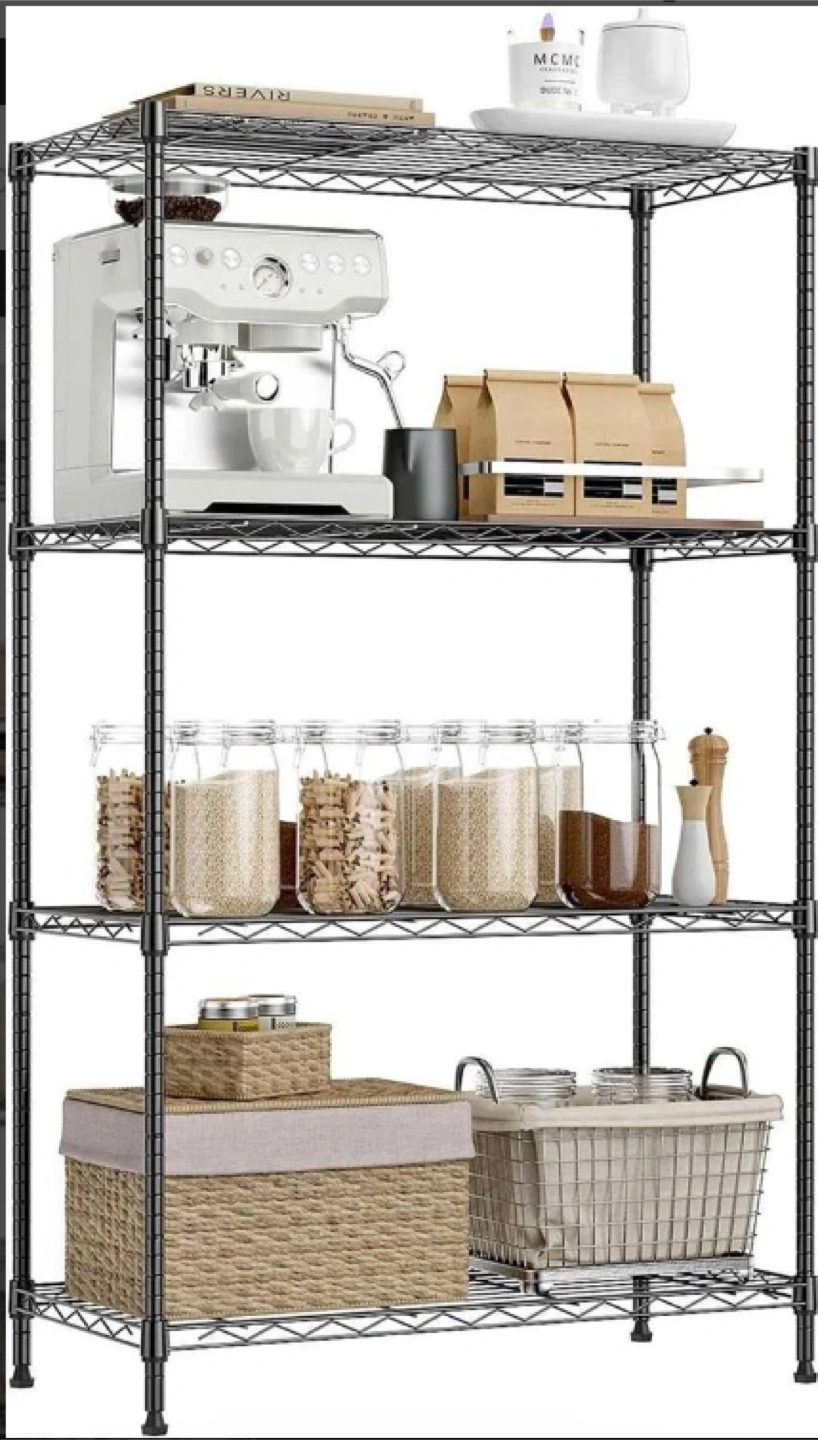 OPEN BOX/NEW OR APPEARS NEW Never Used Package Condition: ORIGINAL Parts Related: ALL PARTS IN Description: Storage Shelving Heavy Duty 4-Tier Utility Shelves Wire Rack for Home Kitchen Office Black 1000 lbs (13.7" D x 29.5" W x 47.2" H)