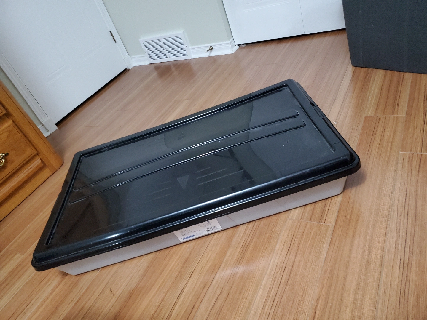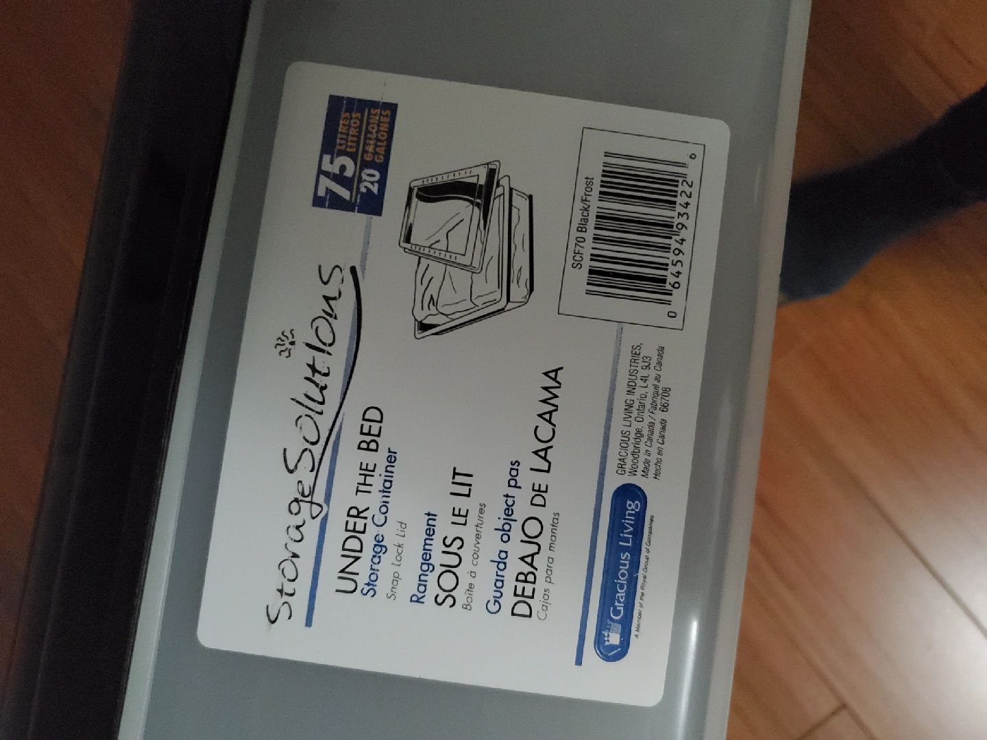 Selling a Storage Solutions Under The Bed Storage Container. It's a 75 Litres / 20 Gallons snap lock container. Perfect for storing items under the bed smoke free