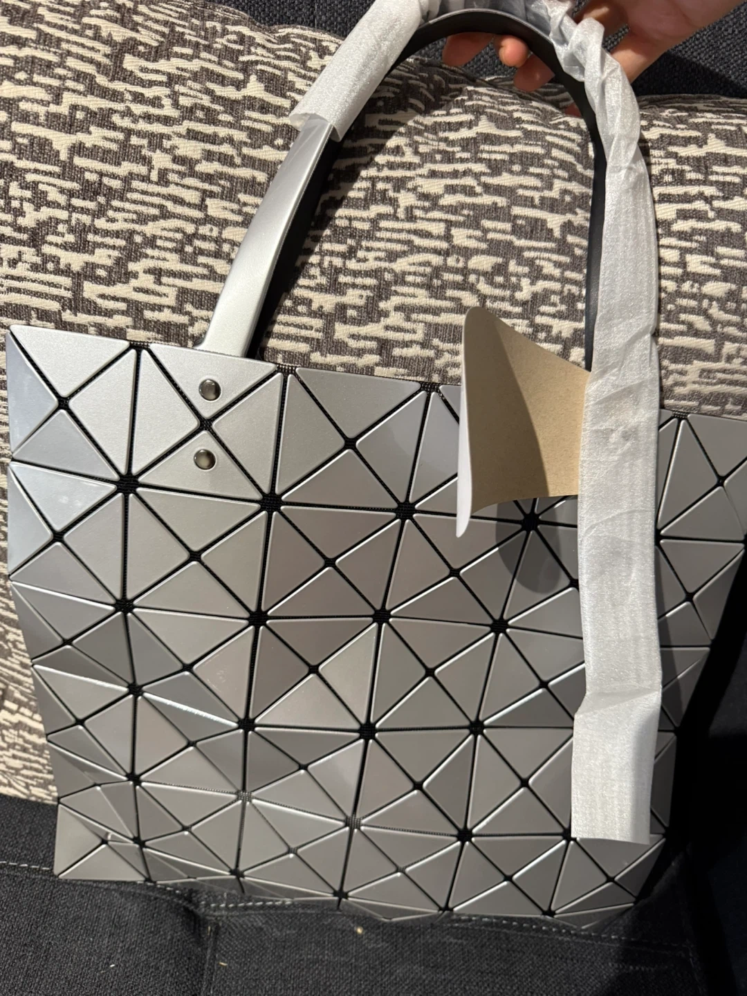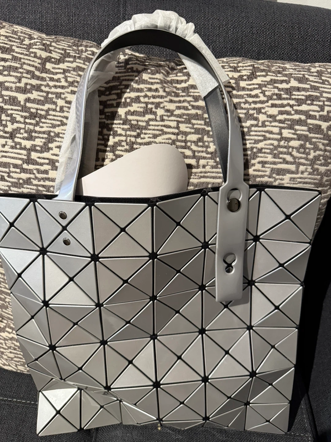 Selling a BAO BAO ISSEY MIYAKE Lucent Tote Bag in silver! This stylish bag features a unique geometric design that's sure to turn heads. It's in great condition and ready for a new owner. Perfect for adding a modern touch to any outfit!