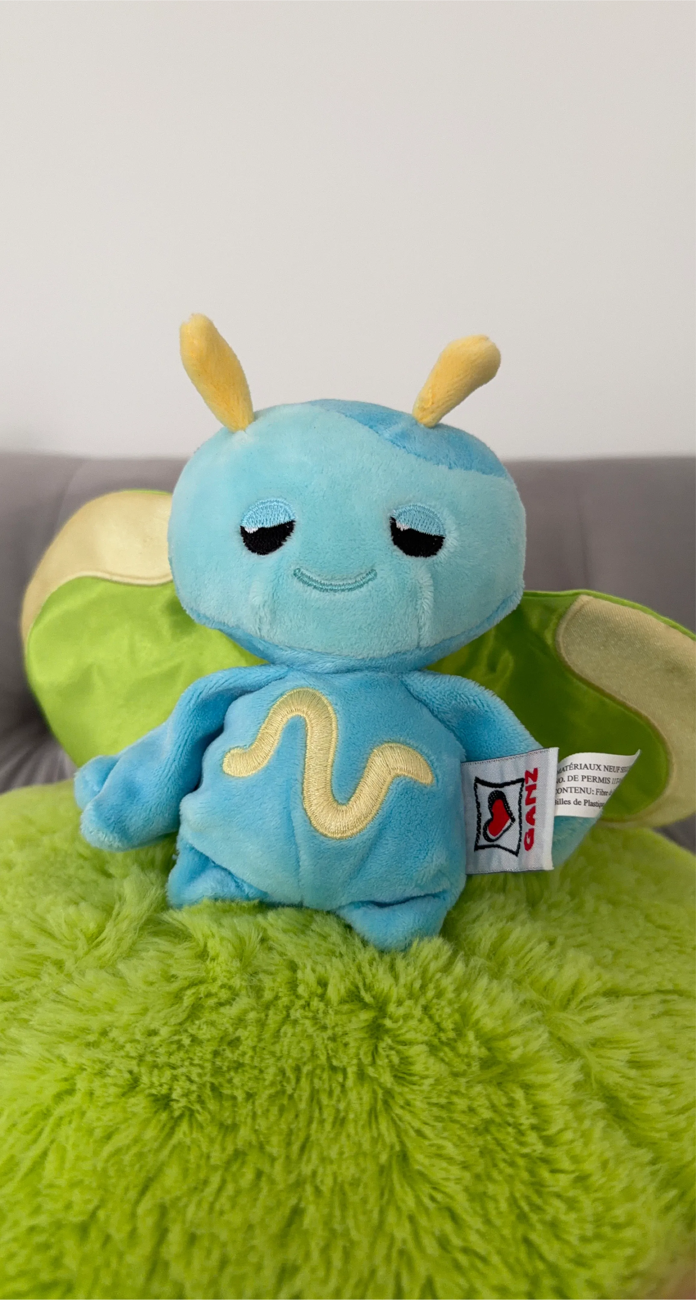 Selling a cute Ganz Webkinz butterfly plush toy! It's in great shape and ready for a new home. This soft, cuddly friend is perfect for kids of all ages. It features a blue body with a yellow design and green wings. Size: 8”x4”. Buy 5 get 5 for free