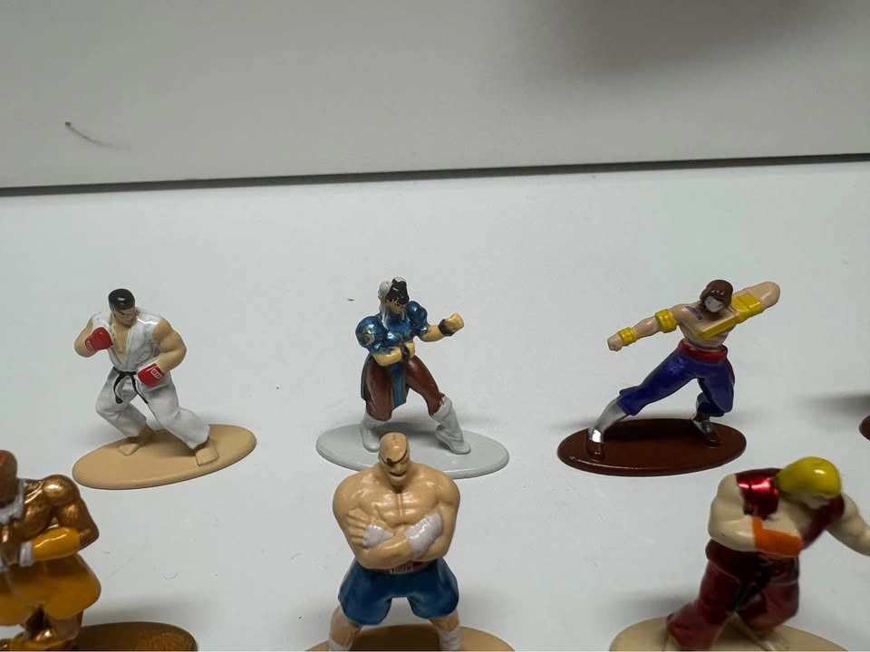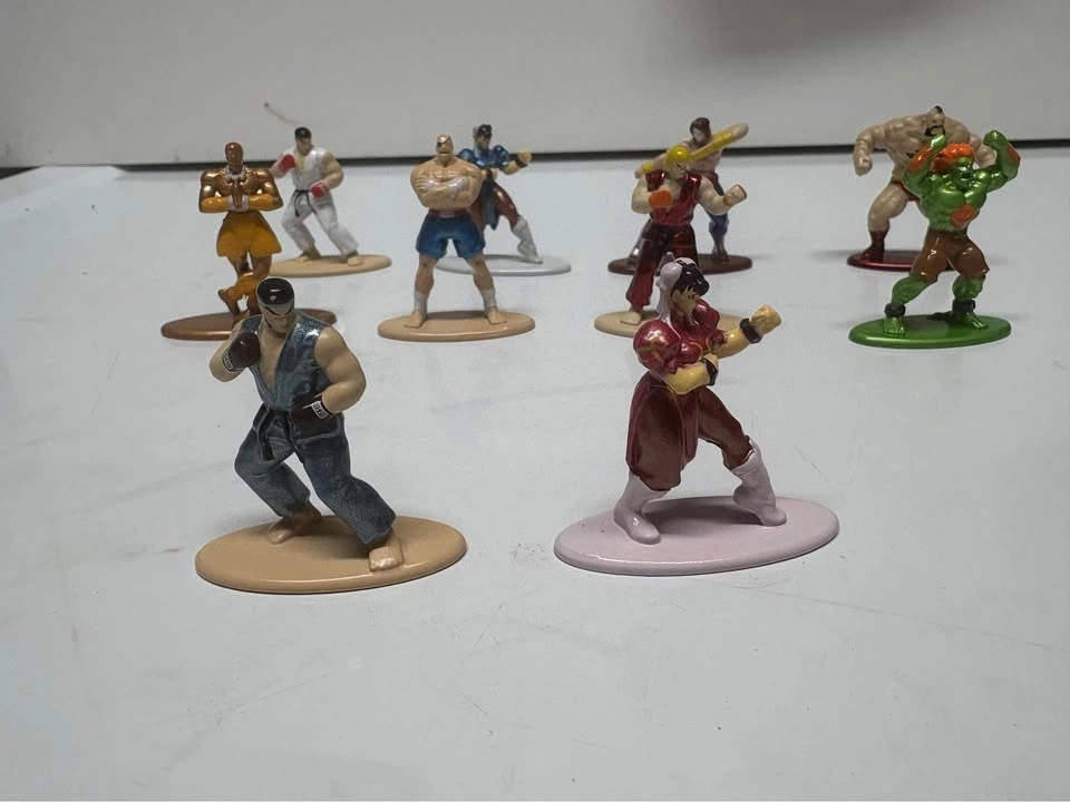 97Jada Toys Street Fighter 2 Nano MetalFig Blind Bag - LOT of 10. You get 10 figs that includes MYSTERY/VARIANT/RARE figures. 10 Figures - 8 Base 2 Variants: - Ryu -Chun-Li - Vega - Zangief - Dhalsim - Sagat - Ken - Blanka *Ryu Silver VARIANT player 2 color *Chun-Li Rose VARIANT player 2 color Location: PICK UP ONLY Riverbend area Street is Beeston Drive I’ll give house number when otw and eta given I get home after 6pm daily Or 1900 Main St 10am-5pm Tues, Thurs, Fri, Sat Comes as shown Figures are new, mint paint and tight joints. Figures used for display and photography purposes only. Adult Collector. Complete from a smoke and pet free home. Featuring the NanoFig die-cast mini figures blind bag set. Each figurine is approximately 1.65 inches tall. Genuine product by Jada Toys.