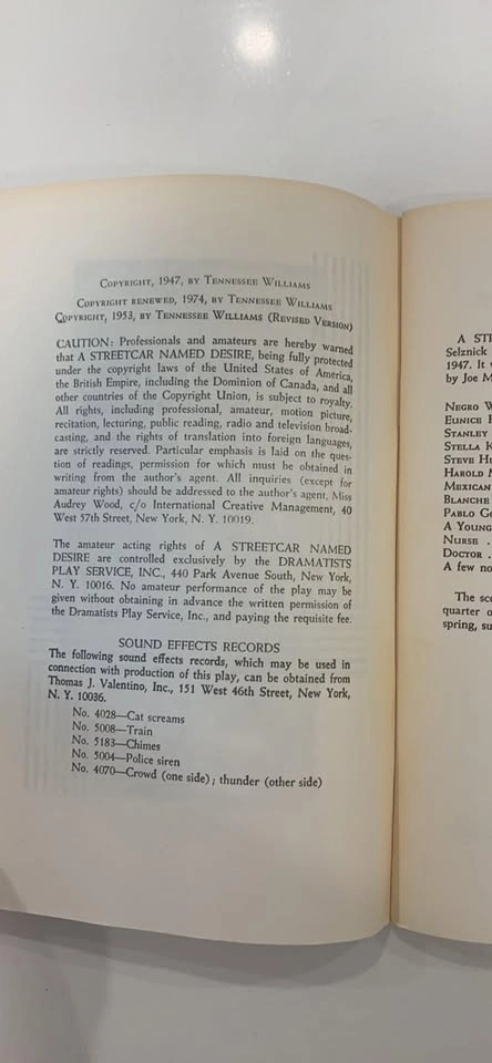 1953 vintage printing of Streetcar Named Desire by Dramatist Play Service Inc.