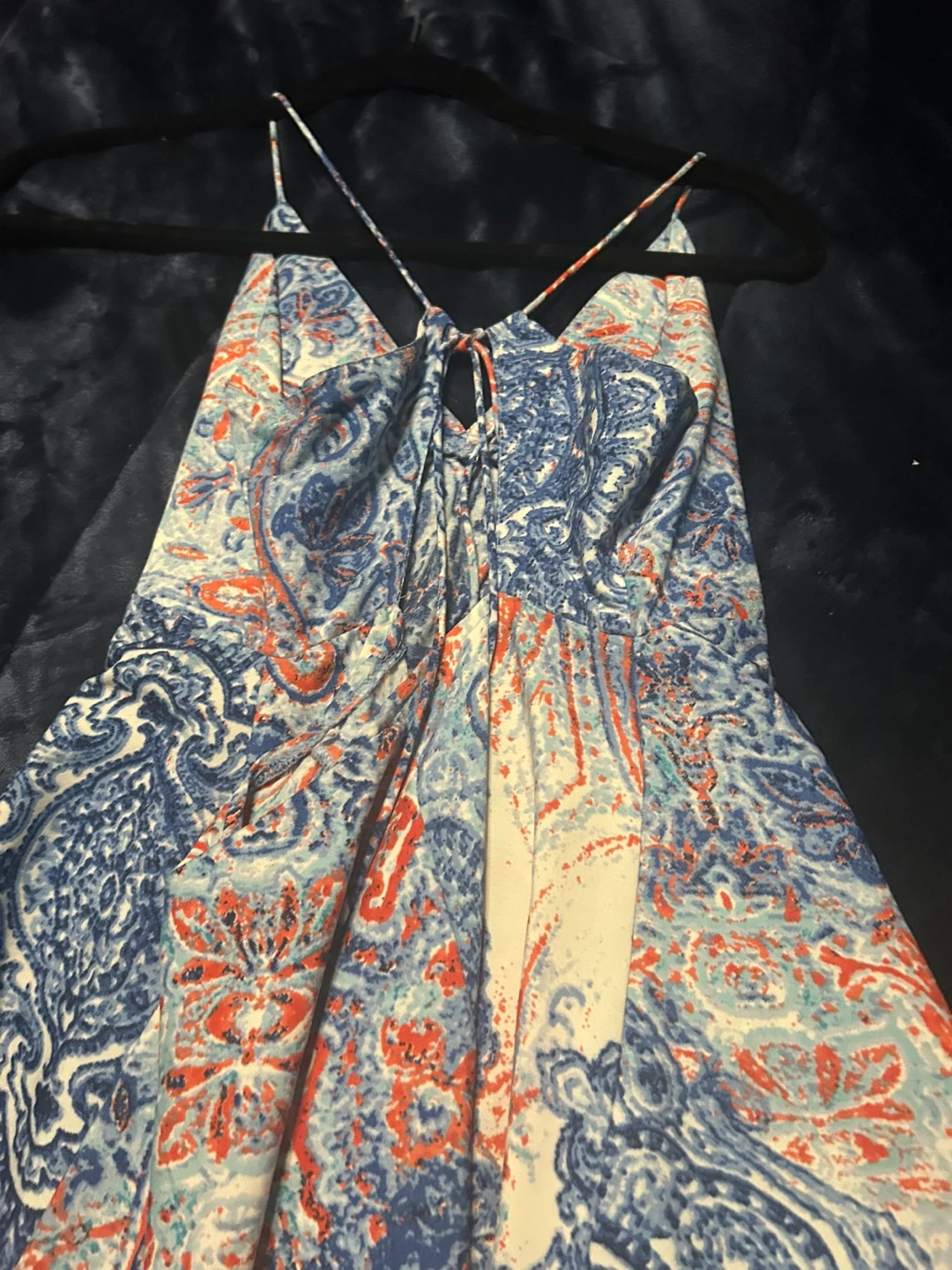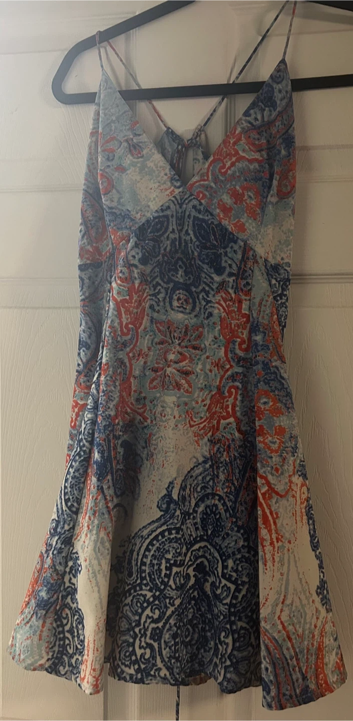 Selling a cute dress from Streetwear Society! It's a size large and has a fun pattern with blue, red, and white colours. It's in great condition and ready for a new home