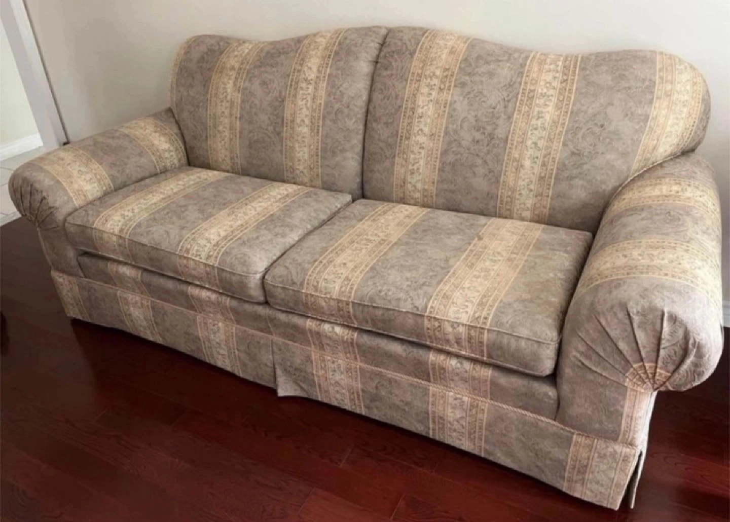 Sofa with a striped patterned fabric. Good condition. Already cleaned. Pick up only. About W:36.5 inch x L:81 inch
