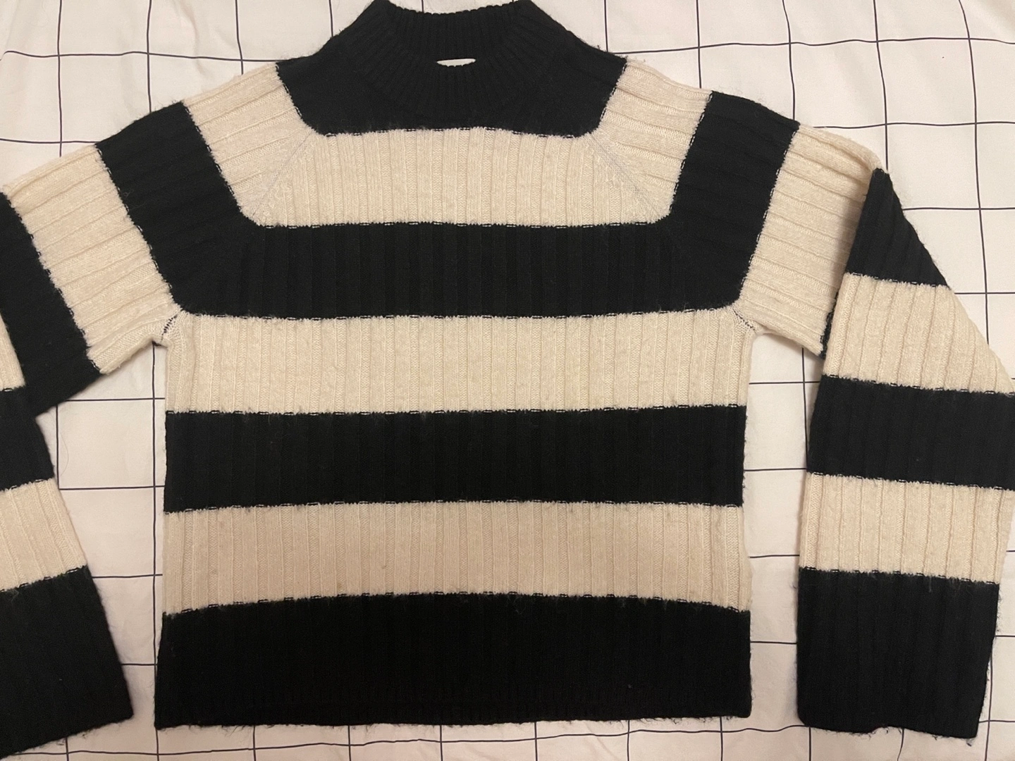 Worn once Cozy ribbed knit sweater. Black and cream horizontal stripes. Long sleeves. Relaxed fit. Size is XS but definitely runs large, for reference I’m a medium and it’s a loose fit for me. Smoke free/pet free home Pick up only Cash only