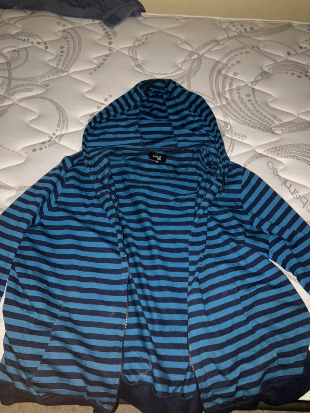 15Here's a szto/f hoodie with a cool striped pattern! It's in great condition and ready for a new home