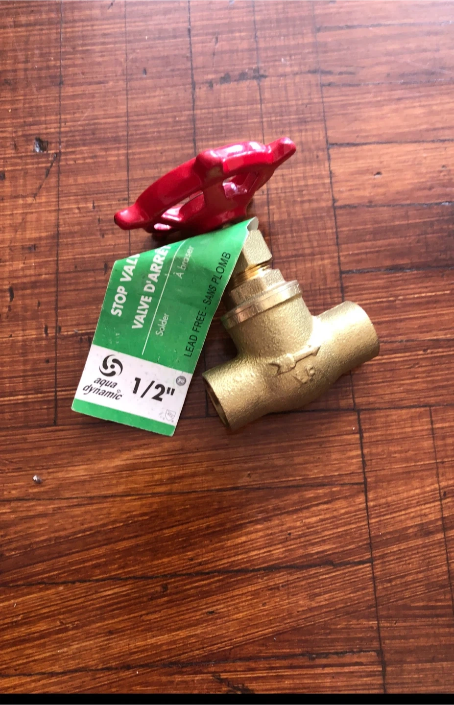 This is a 1/2 inch solder ball valve from Aqua Dynamic. It's lead-free brass construction. This valve is used to stop or start the flow of water.