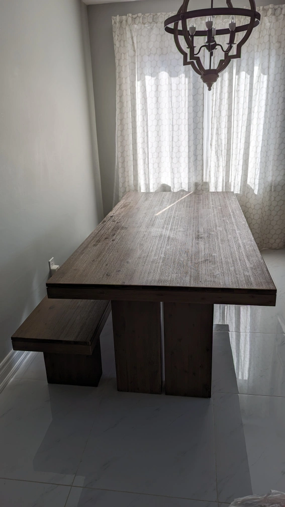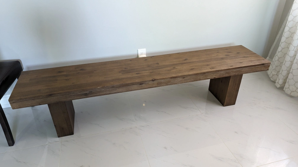 The matching bench for the Cologne Dining table. Made of solid acacia wood. While the photo includes the table, this listing is for the bench ONLY.