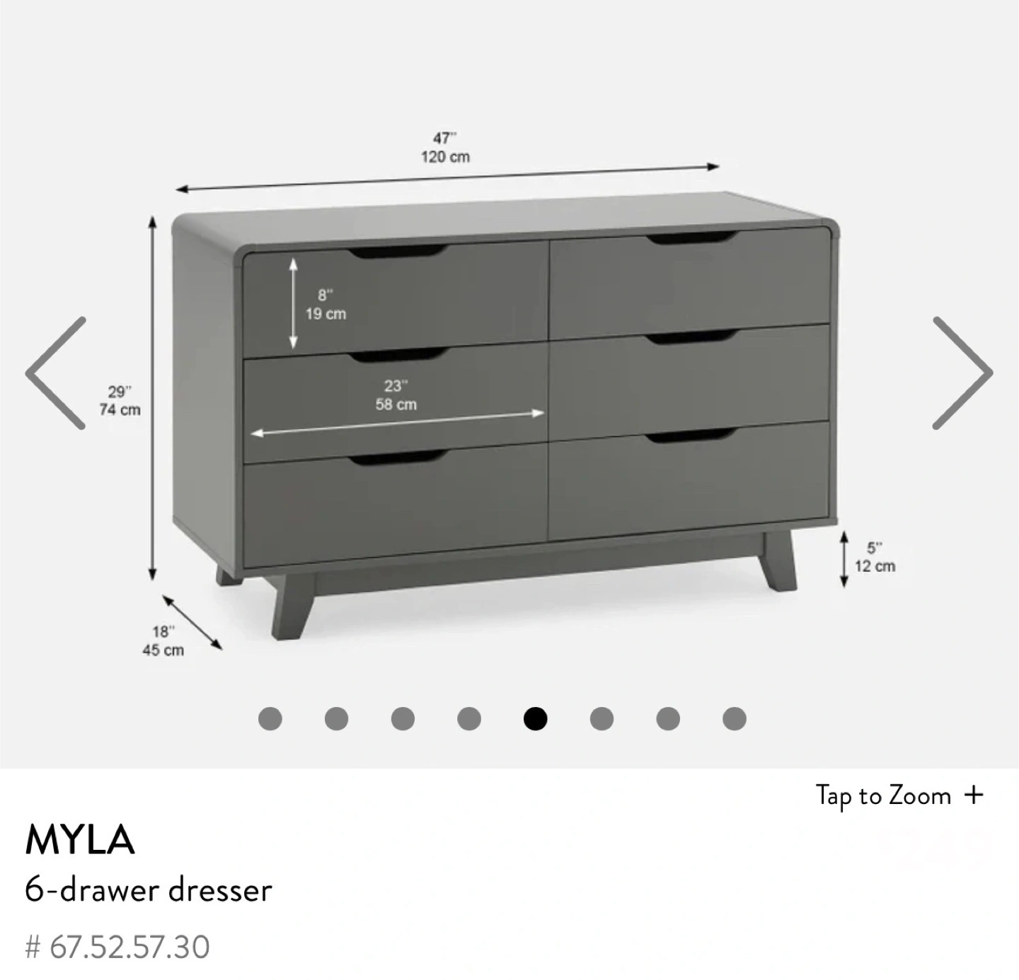 Structube - MYLA collection Dresser is in great condition. Few scuffs from wear and tear on item. Long 6 drawer dresser - measurements in last photo. Pick up only ‼️